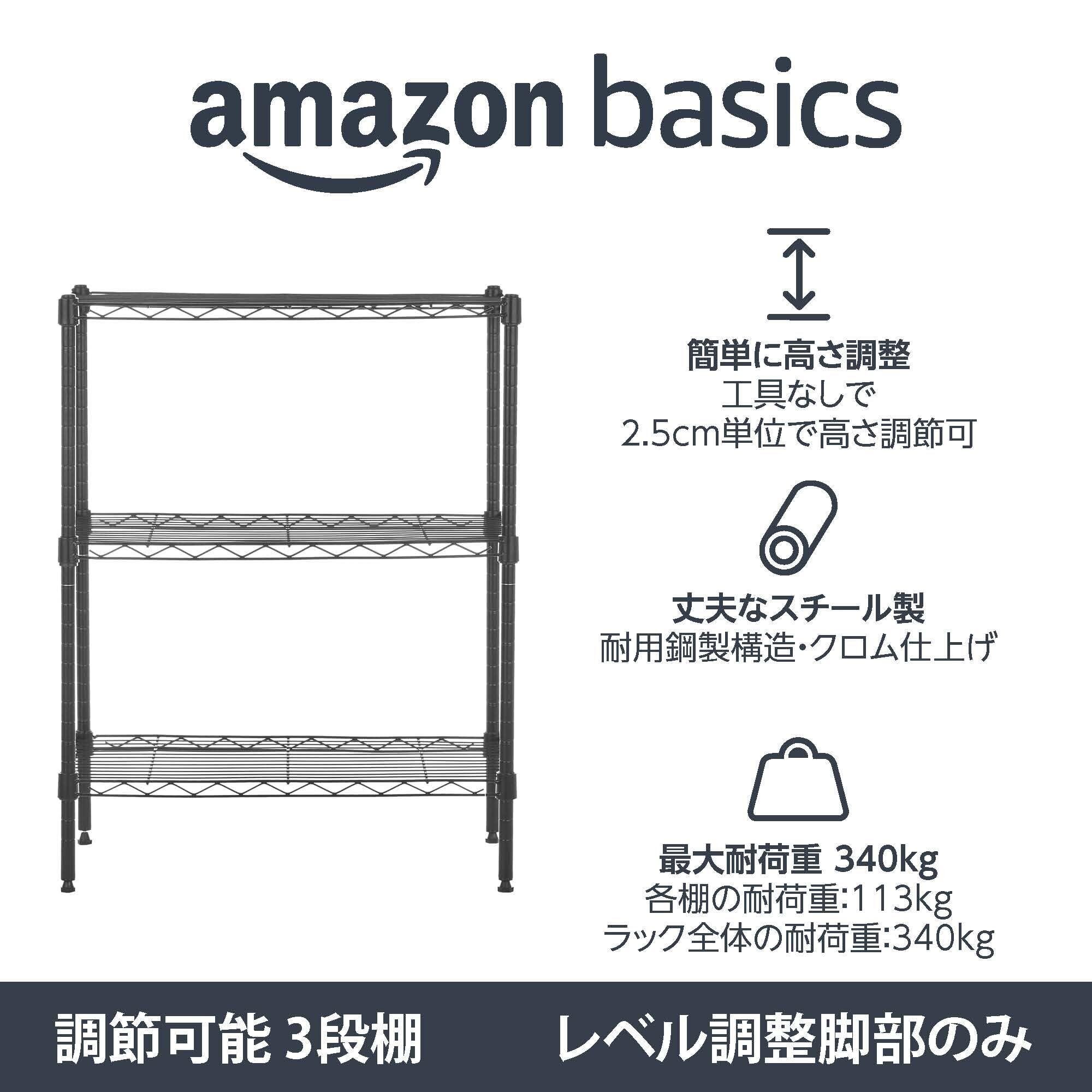 Amazonベーシック 3段スチールラック 棚 メタルラック 耐荷重340kg 幅58.9×奥行34×高さ76.2cm ブラック