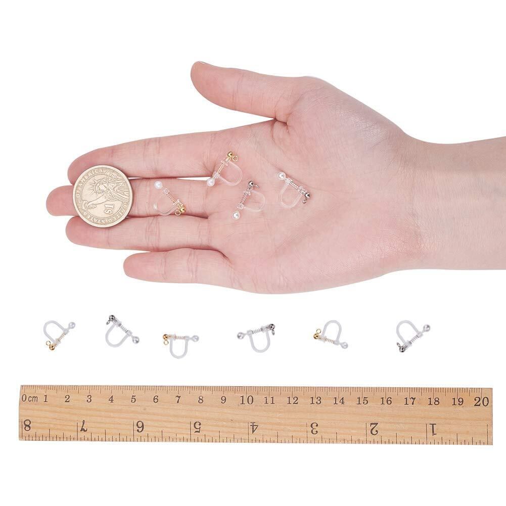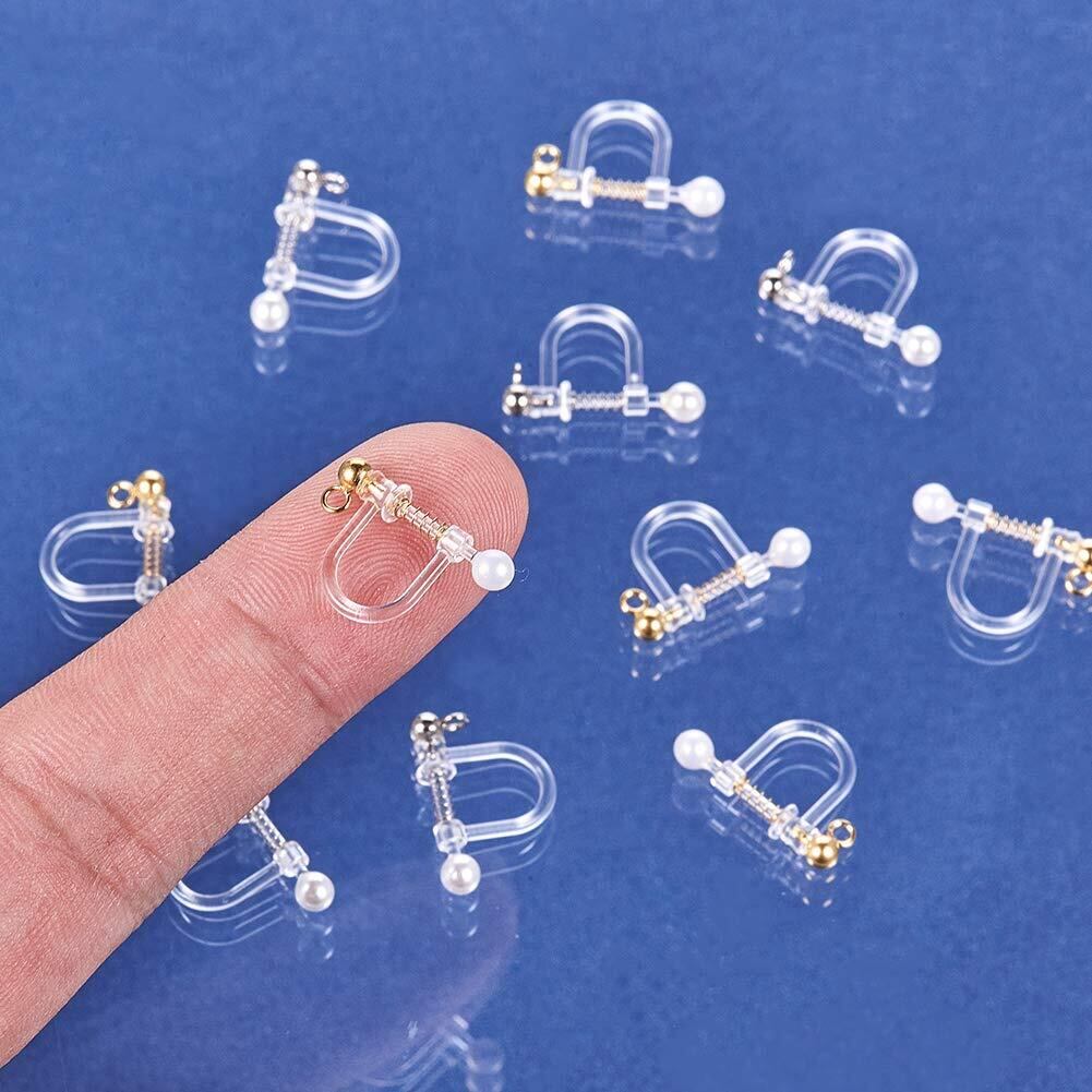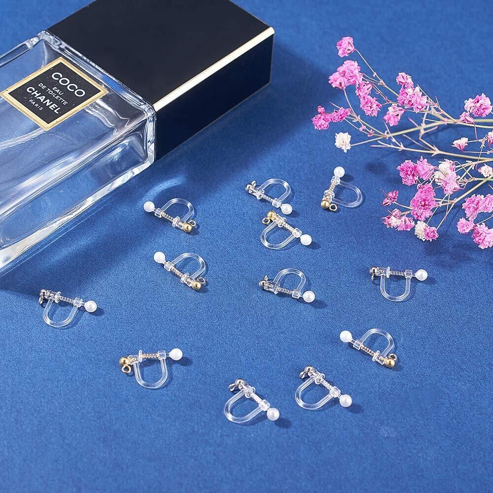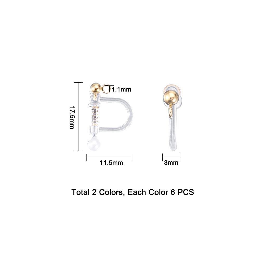 12個 2色 プラスチッククリップオンイヤリングパーツ ステルスイヤクリップ ループ付き シェルパールビーズ 304ステンレス製パーツ付き ホワイト ステンレス鋼色 ゴールド 無痛 アレルギーフリー ピン ピアスパーツ スタッドピアス 耳飾り イヤリング メンズレディジュエリー イヤリング作り アクセサリーパーツ 手芸 DIY用品