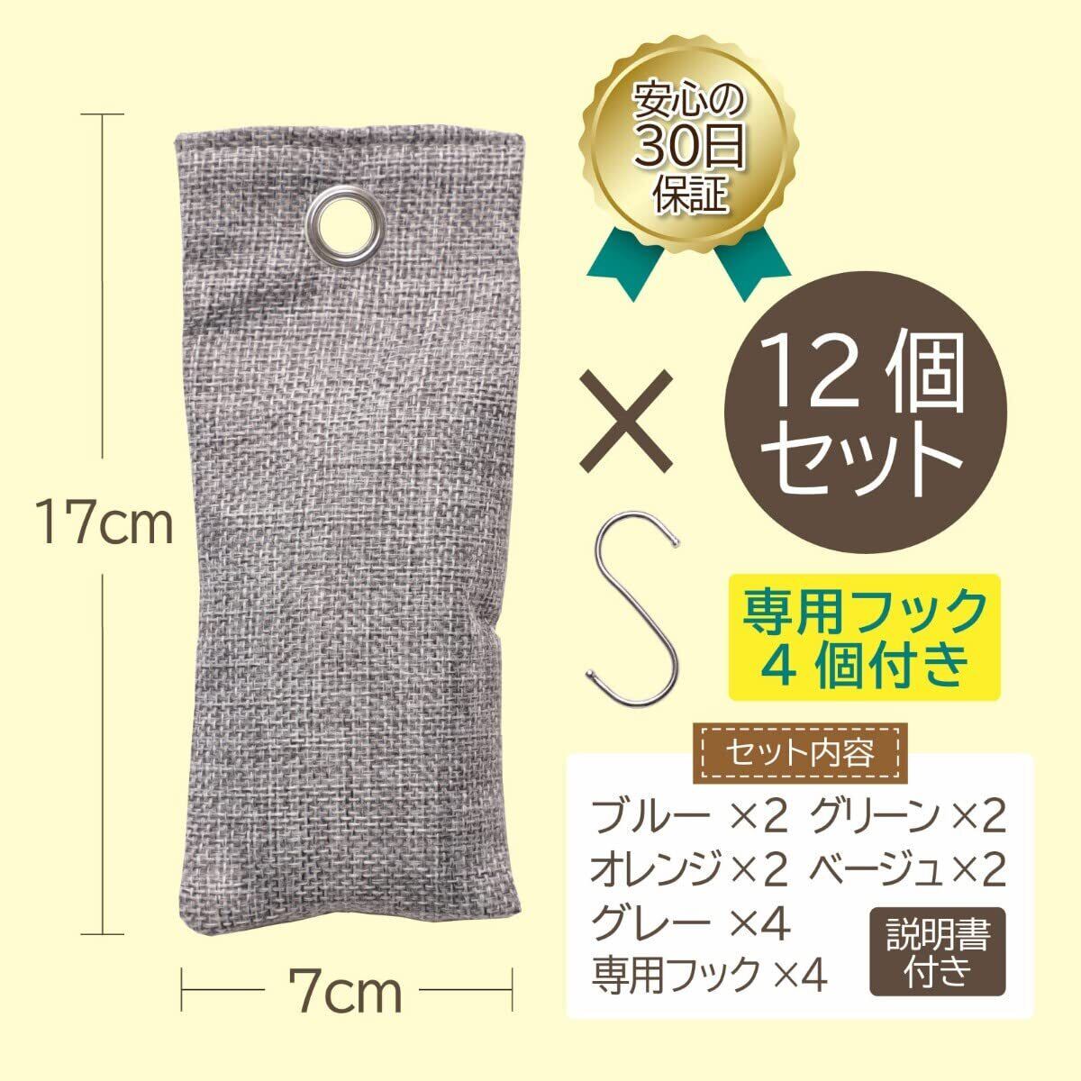 【天日干しで繰り返し使える/消臭効果検証済】 R.D.A. 竹炭 消臭 除湿 脱臭剤 靴 靴箱 下駄箱 クローゼット タンス 湿気取り 匂い消し 12個セット