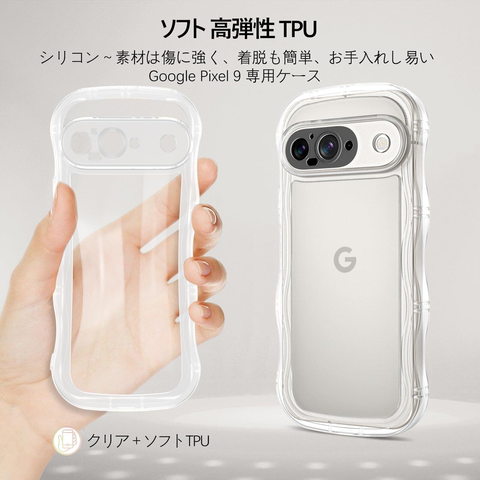 Google Pixel 9 ケース クリア ウェーブ ピクセル 9 ソフト TPU うねうね 純透明 ケース マツと感 人気 韓国 耐衝撃 超軽量 薄型 おしゃれ 黄ばみなし アクスタが入る スマホケース pixel9 ワイヤレス充電対応 ストラップホール付き グーグルピクセル9 なみなみ カバー(クリア 純透明 )
