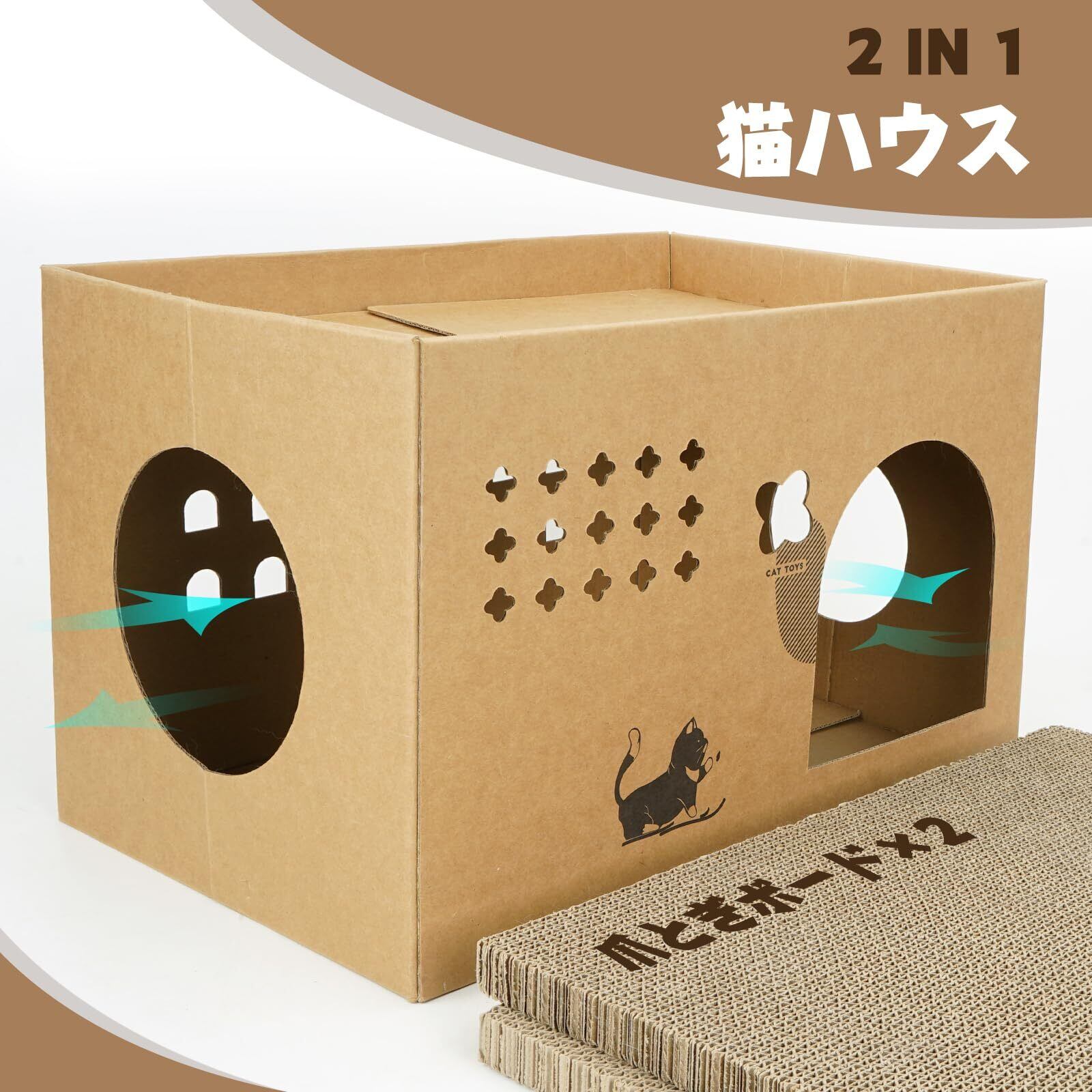 ULIGOTA猫 爪とぎ 段ボール キャットハウス 猫用 つめとぎ ダンボールハウス 猫ベッド 通気 丈夫 ストレス解消 組立簡単