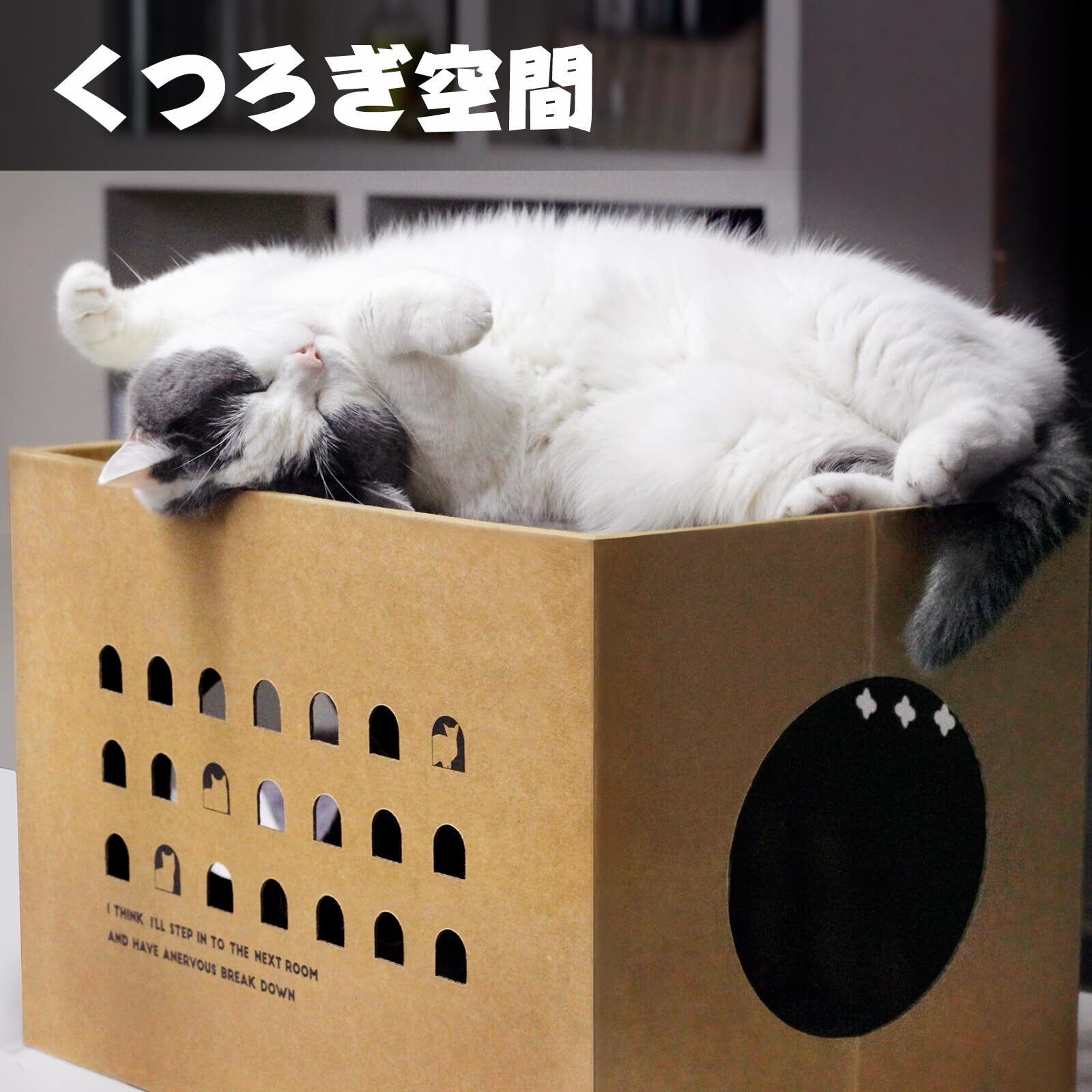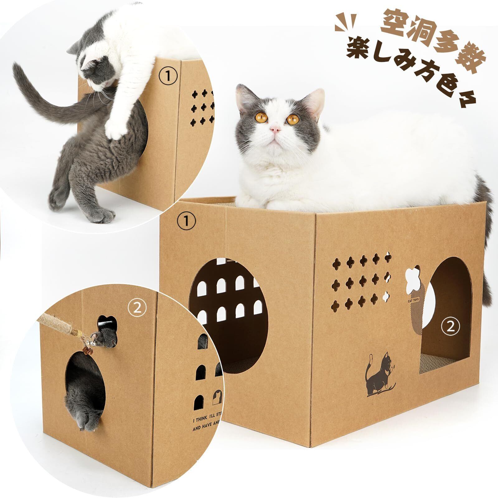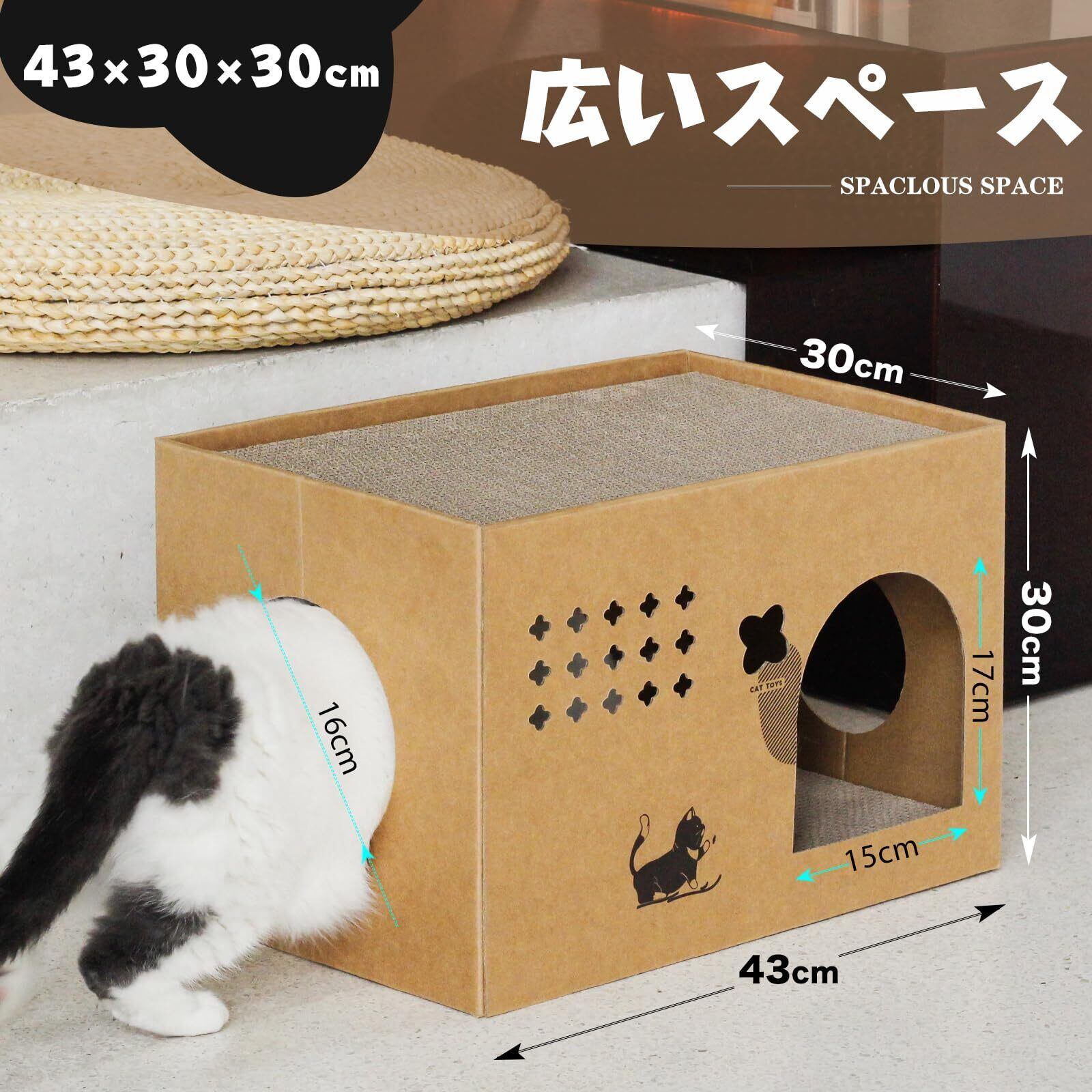 猫ちゃんが喜んで入るダンボール製ボックスです.爪とぎができる段ボールキャットハウスでもあります。大切な猫ちゃんの運動不足&ストレス軽減できます