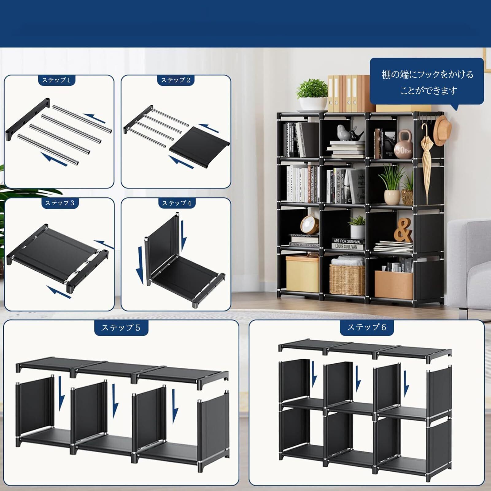 本棚 大容量 組み立て式 棚 ラック 収納棚 整理棚 ボックス スチール性 インテリア 簡単組立 おしゃれ 多用途 耐久性 収納便利 省スペース 1個 幅30×奥行30×高40㎝ 12ボックス
