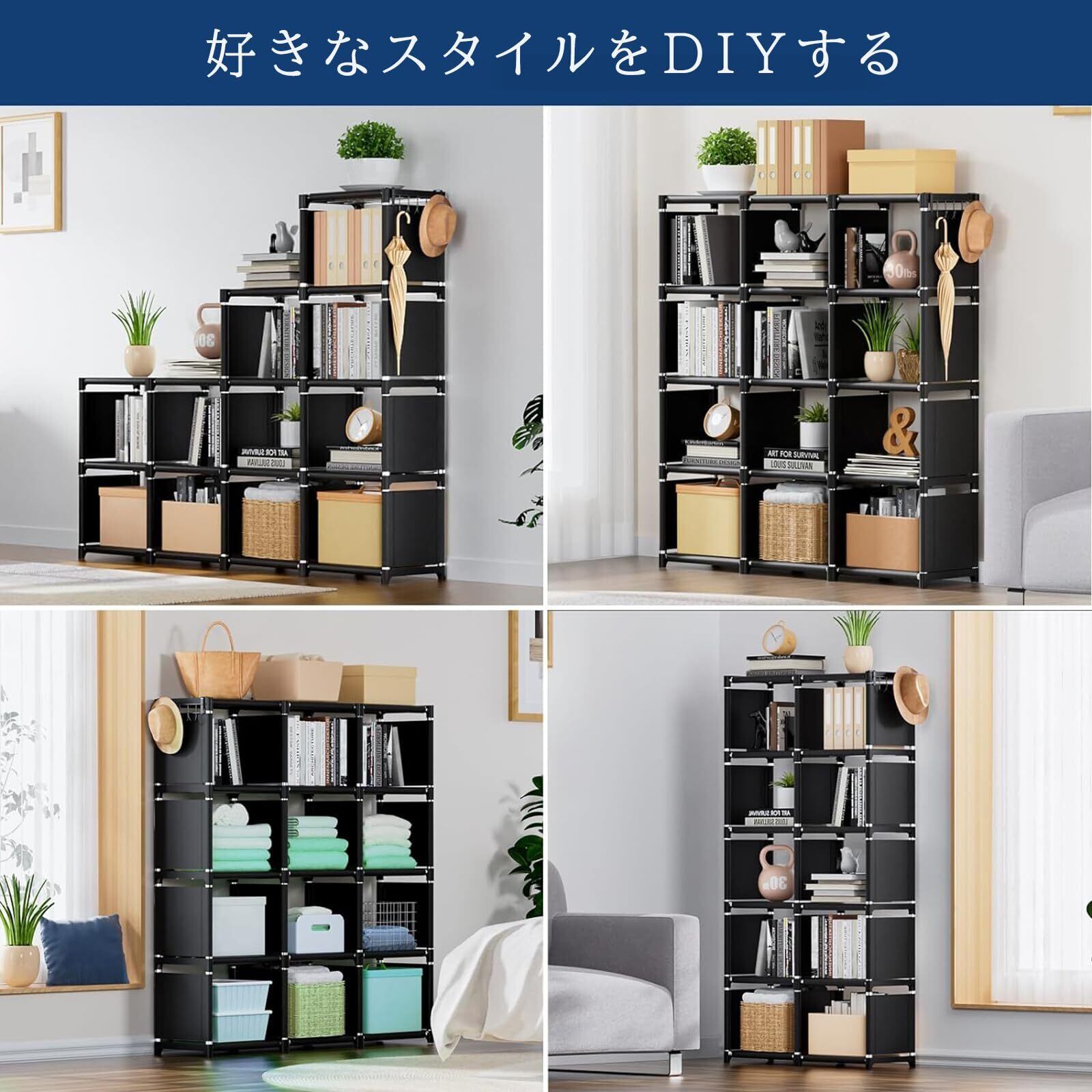 【自由にDIY】:自由に想像力を働かせてください。組み立て棚の立方体の構造は、本棚、ラック、クローゼットの収納棚など、さまざまな形を作ることができます。