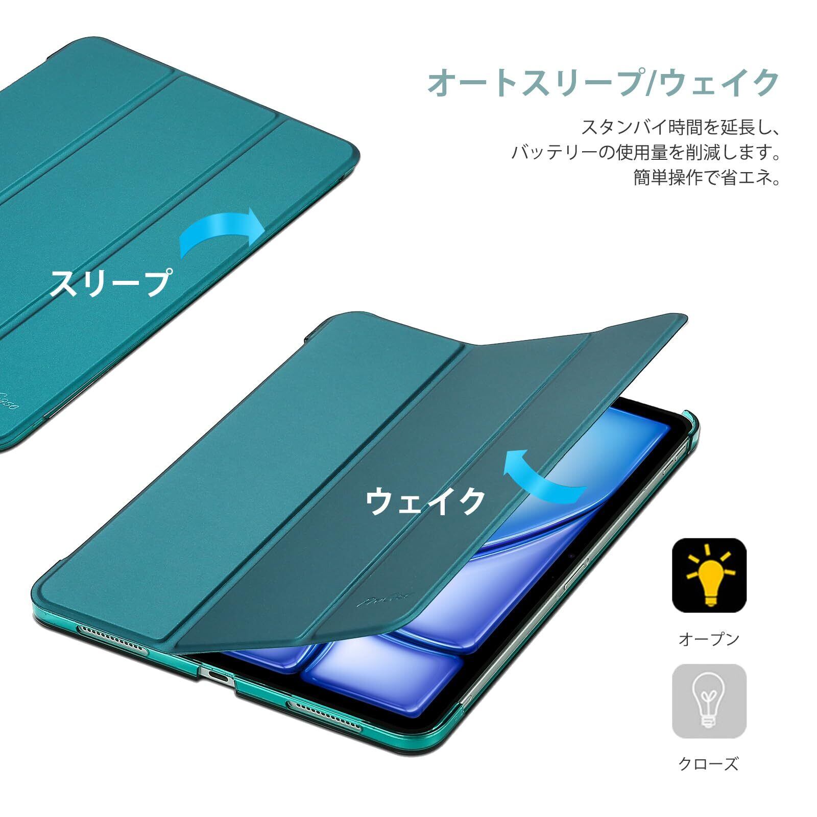 ProCase iPad Air 11インチ ケース M3 (2025) / M2 (2024) / iPad Air 第5世代 / 第4世代 軽量 スタンド 三つ折り フォリオ保護ケース 半透明バックカバー Apple Pencil 2対応 対応端末:iPad air 11インチ M3 (2025)、M2 (2024)、iPad Air5 2022、Air4 2020 - エメラルド