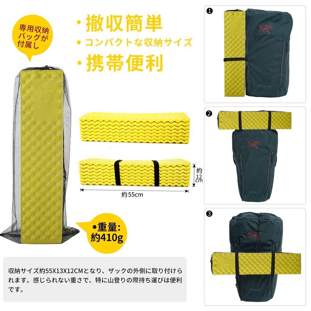 山登りやキャンプなどの際、特に軽量化に要求があって、マットを体の下に履いて快適に寝ます。アウトドア用、硬い地面の上に置いても座布団として使えます。シュラフの下に履いて石や木の根があるゴツゴツする地面も快適に寝ます。家でも、突然来客の時、床の上に置いてベッドとして直接に使えます。