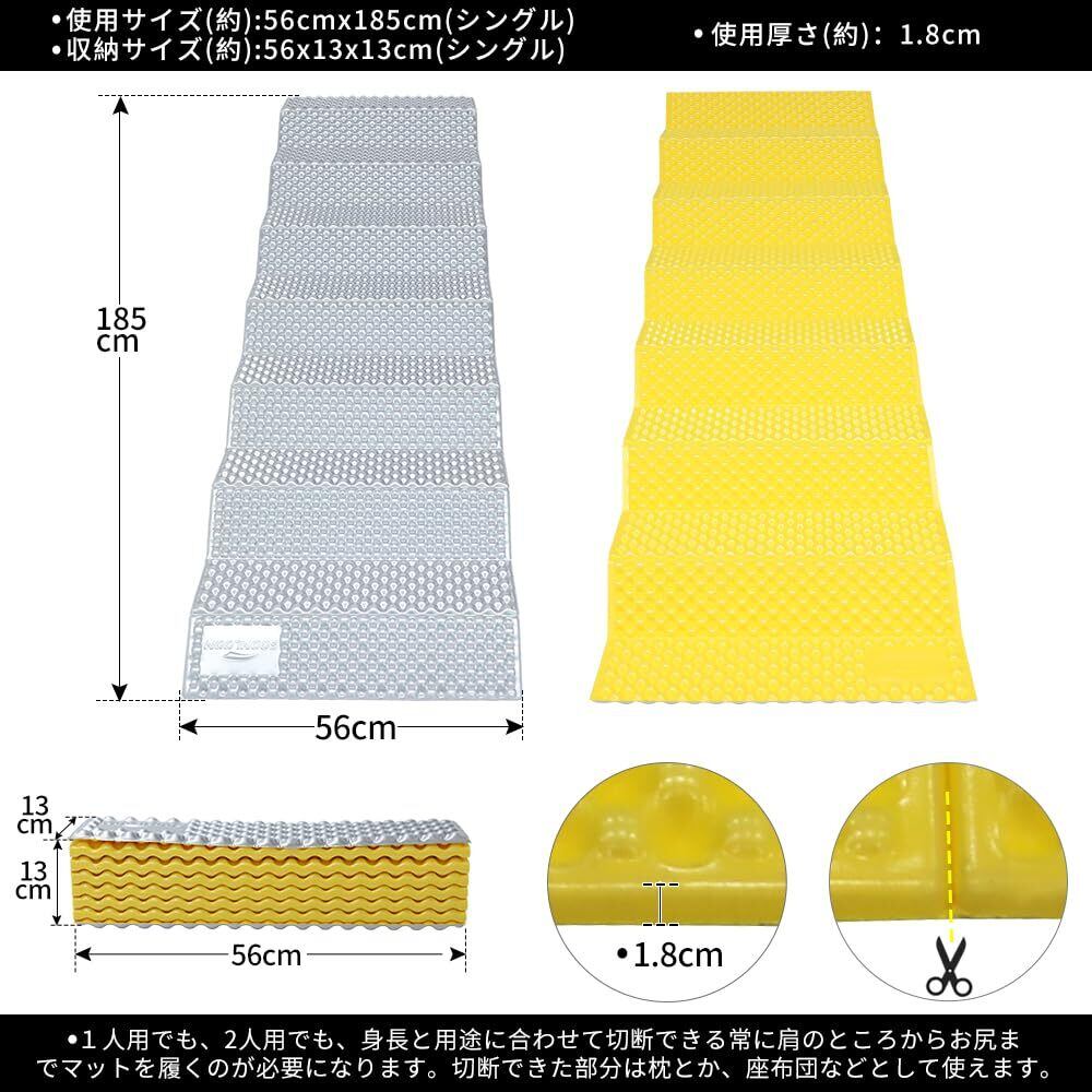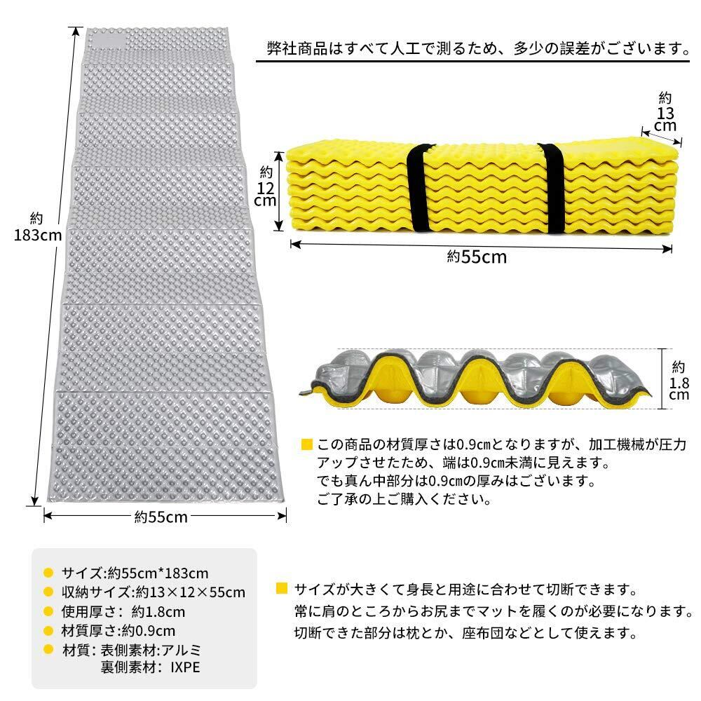ヒント:1)マット本体の展開サイズは(約)55cmx183cmと測っていますが、実際の利用サイズは少しだけ小さくなります。2)マット厚さに関して、使用厚さは約18mm、材質厚さは約9mm、端には機械加工により高圧力を施したので約4mmとなります。ご了承の上ご購入ください。