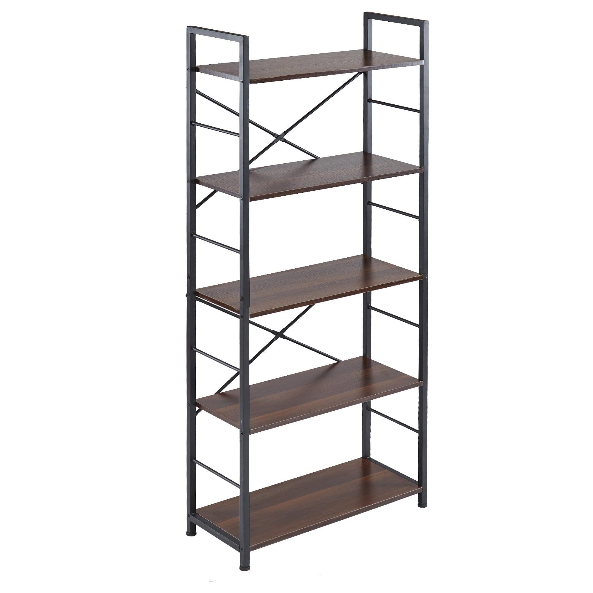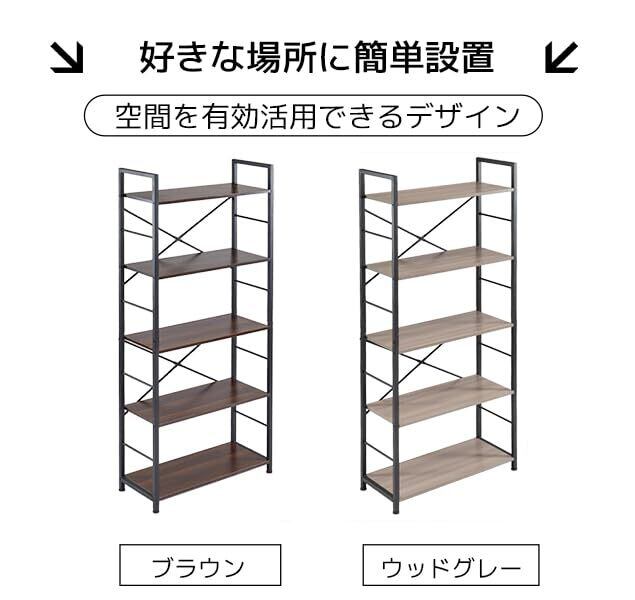 SOFTSEA オープンシェルフ ラック 5段 幅68×奥行28×高さ161cm 耐荷重30KG/段 収納棚 収納ラック 隙間収納 ユニットシェルフ オープンラック スチールラック 木製 スリム (ブラウン)