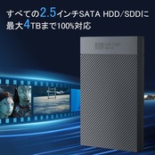 【幅広い互換性】 この2.5インチ hdd ケースはWindows、Linux、Mac OSに対応可能。 すべての厚さ9.5mm/7mmの2.5インチSATA HDD/SSDで使えます。 ストレージ拡張とデートバックアップに最適 フィルム、画像や映像などデータの保存、パソコンストレージ拡張に適用しています。企業、教育機関において、そして家庭内のパソコン間に迅速かつ簡単にデータをバックアップすることができます。古いPCから外したHDD/SSDを外付けHDDとして活用でき、遊休のハードディスクを再び活躍させます。