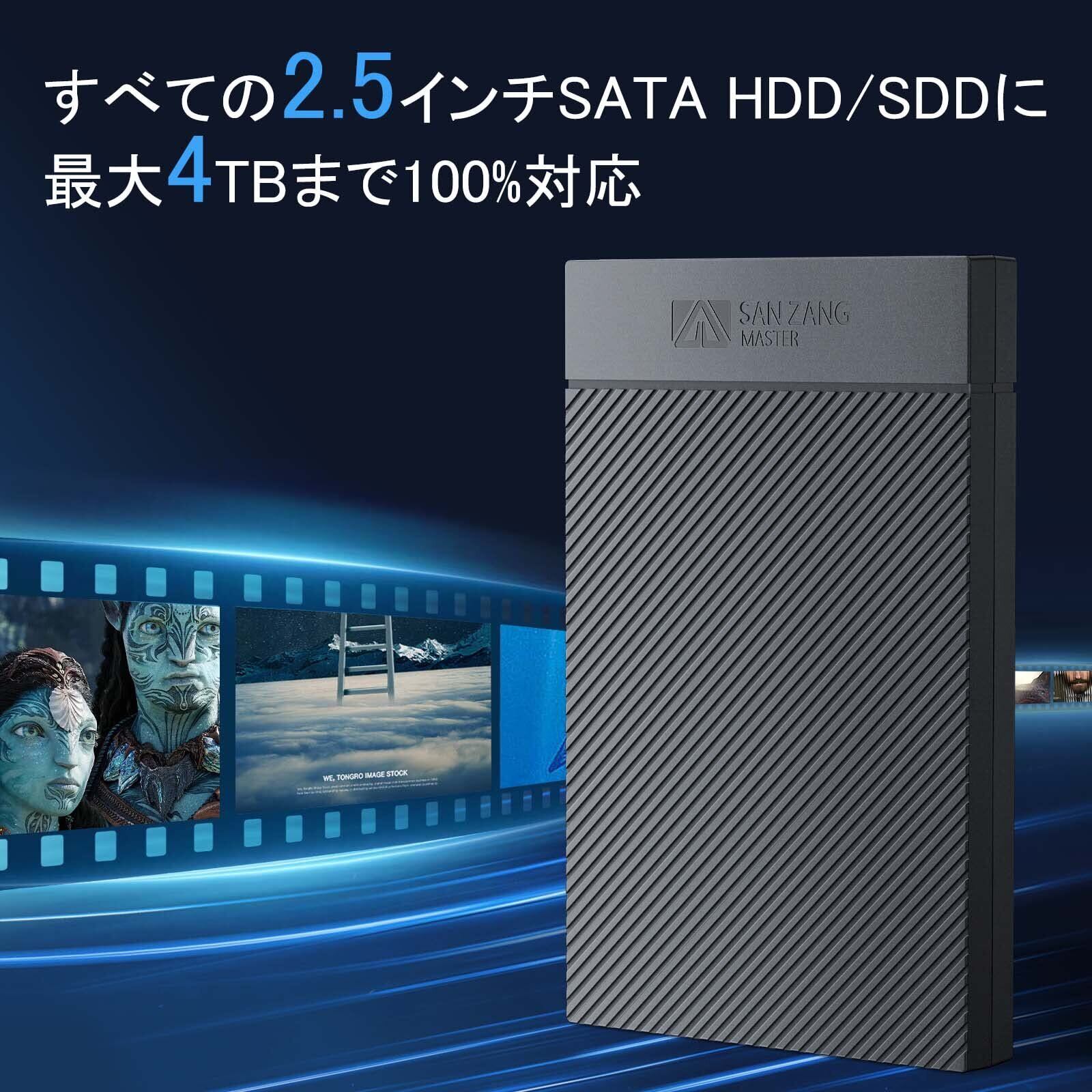SAN ZANG MASTER 2.5インチ HDD ケース USB 3.1 6Gbps接続 SATA UASP対応 ssd ケース 2.5インチ 工具不要 HDD外付けケース 簡単着脱 ハードディスクケース9.5mm/7mm HDD/SSD対応 2.5インチ ssd ケース Mac OS/Windows/Linux等に対応 【USB C-USB A ケーブル付き】ブラック