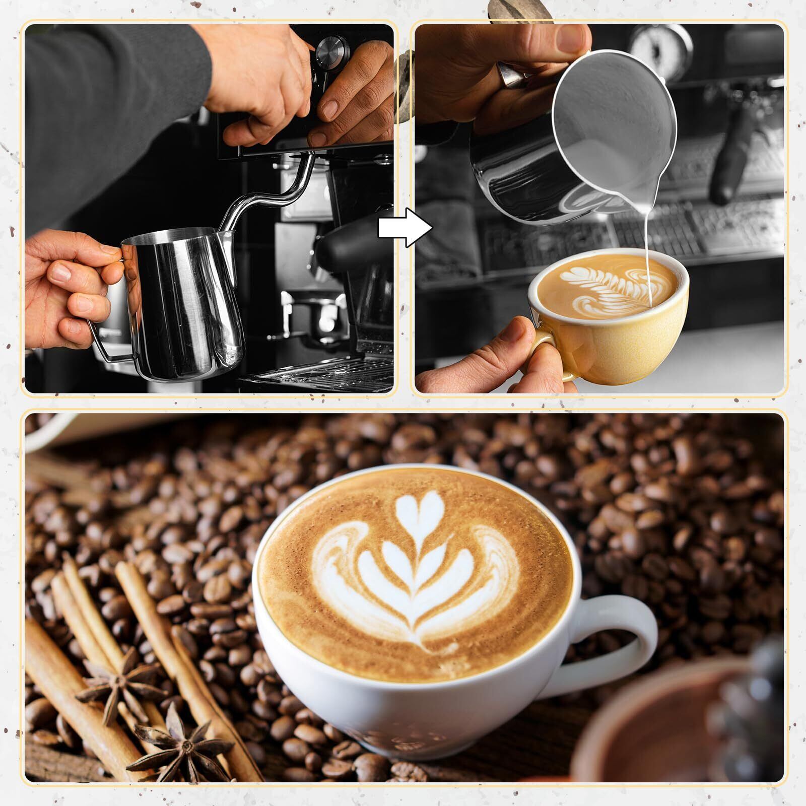 目盛り付き:目盛り付き、液量をコントロールしやすし、初心者にも扱いやすいです。 功能:ミルクをスチームで撹拌する際、ミルクがよりスムーズに回転し泡立ち豊かと更にきめ細かなミルクを作り出します。