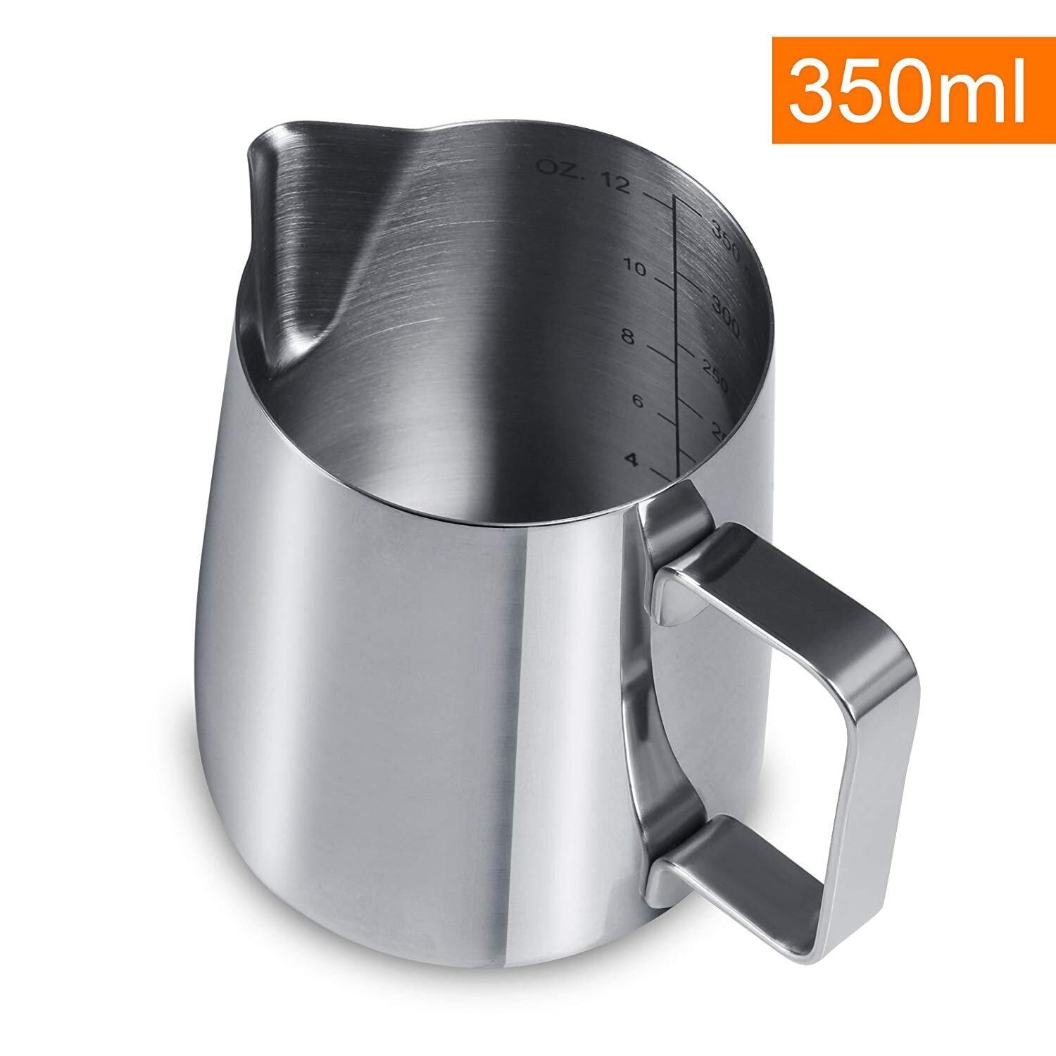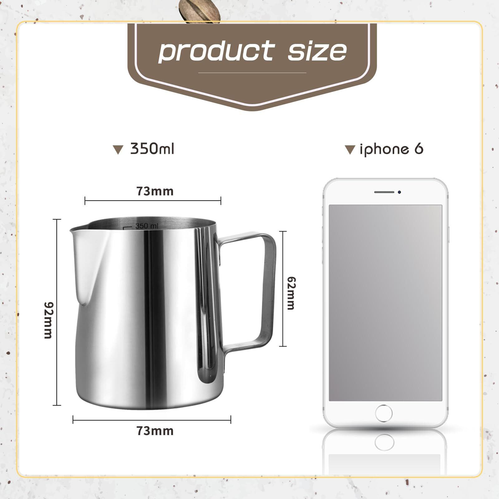 GWHOLE ミルクピッチャー ミルクジャグ ステンレス製 350ml ラテアート デロンギ フォームドミルク カプチーノカップ クリスマス ギフト シルバー