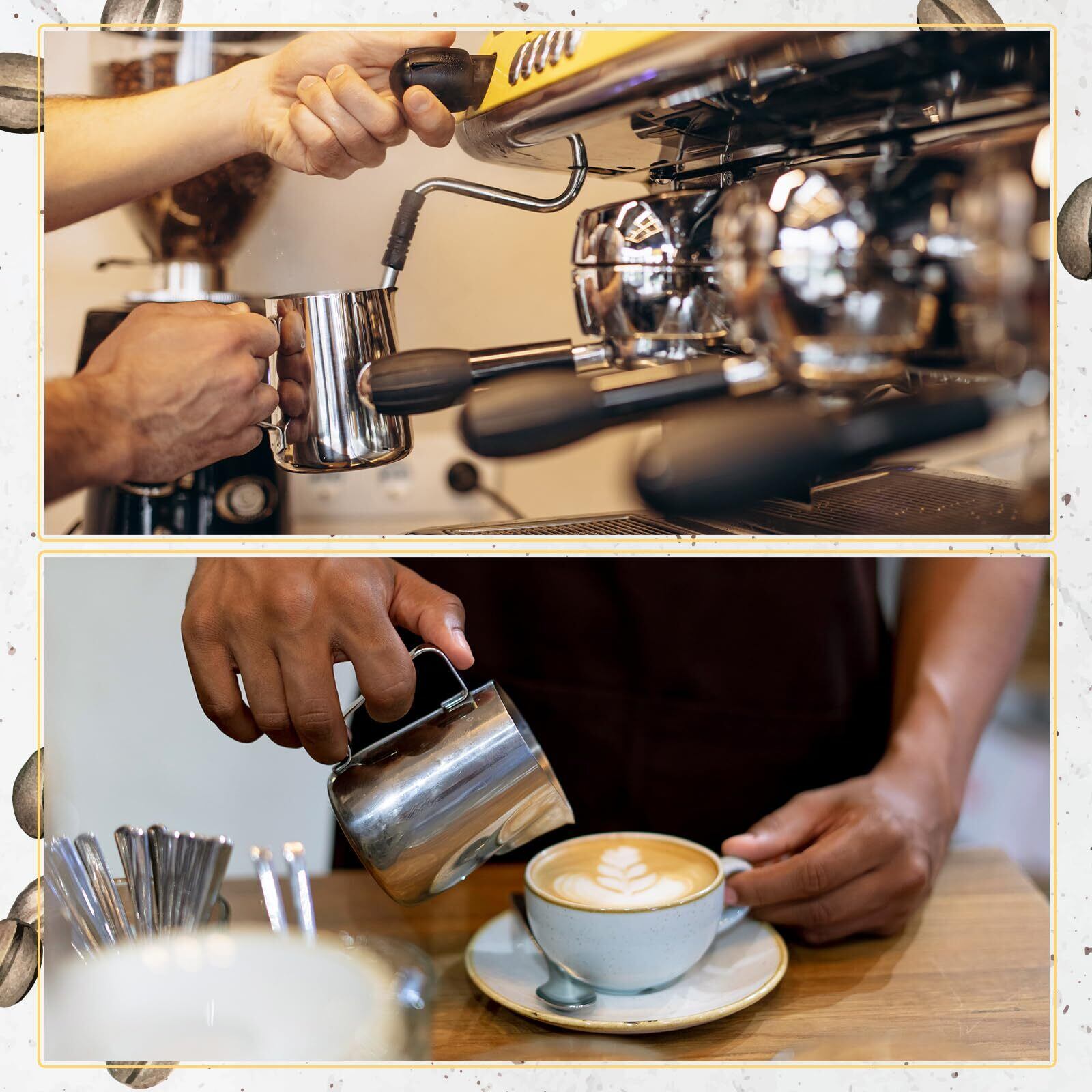 ユニークなデザイン:注ぎ口はラテアート仕様にデザインされていて、適度に幅を持たせたくちばしタイプなので初心者の方から上級者まで幅広くお使いいただけます。