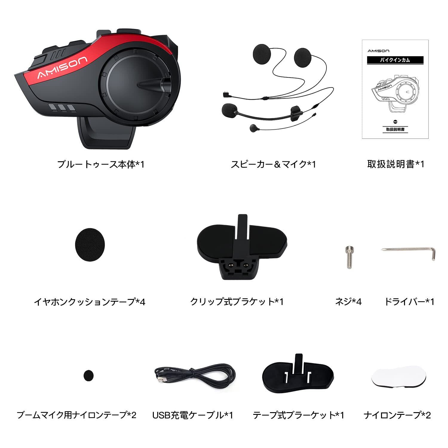 Amison バイクインカム 最大10人同時通話 最大通話距離2000m Bluetooth 5.0 無線機バイクいんかむ 連続28H時間通話 IP67防水 ヘルメット用 音楽共有 音声聞き取リ FMラジオ付きインターコム 自動ペアリング 通信機器 技適認証済み 日本語音声案内 説明書