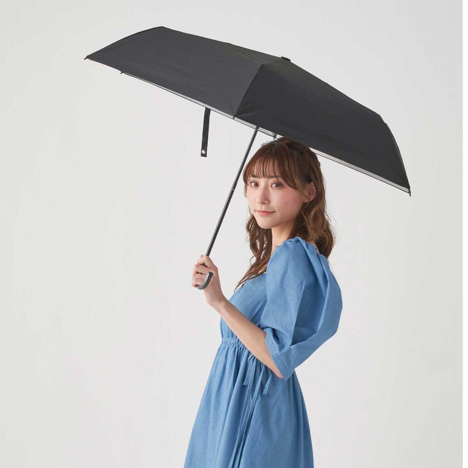 親骨の長さ:50㎝ 全長:約28.5㎝ 広げたサイズ:約90㎝ 重さ:約190g 手にかけるのに便利な曲がり手元の折りたたみ傘。内側に施されたカラーラミネーションが顔映りを明るく綺麗に見せます。