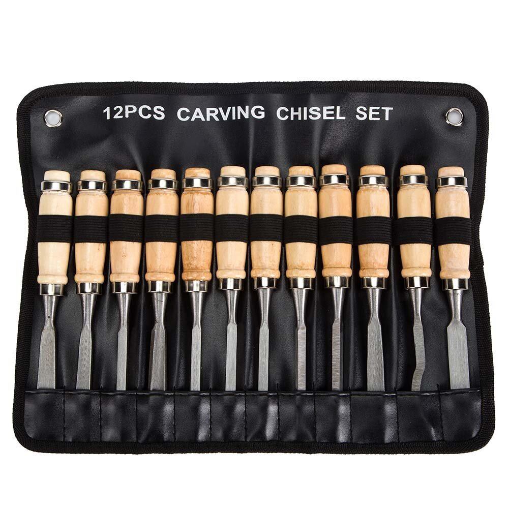 彫金用篆刻刀 彫刻刀 ノミ のみ 鑿 蚤 入門 12本セット 木工 木彫り 木像 木槌 金槌 荒削り 彫刻 収納袋付き