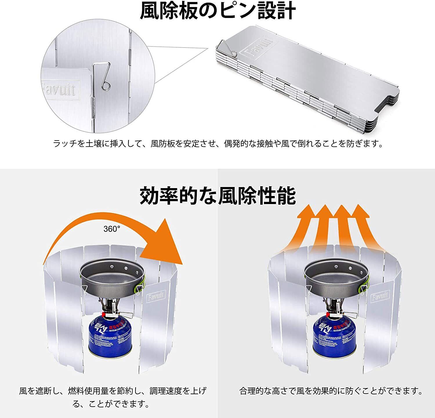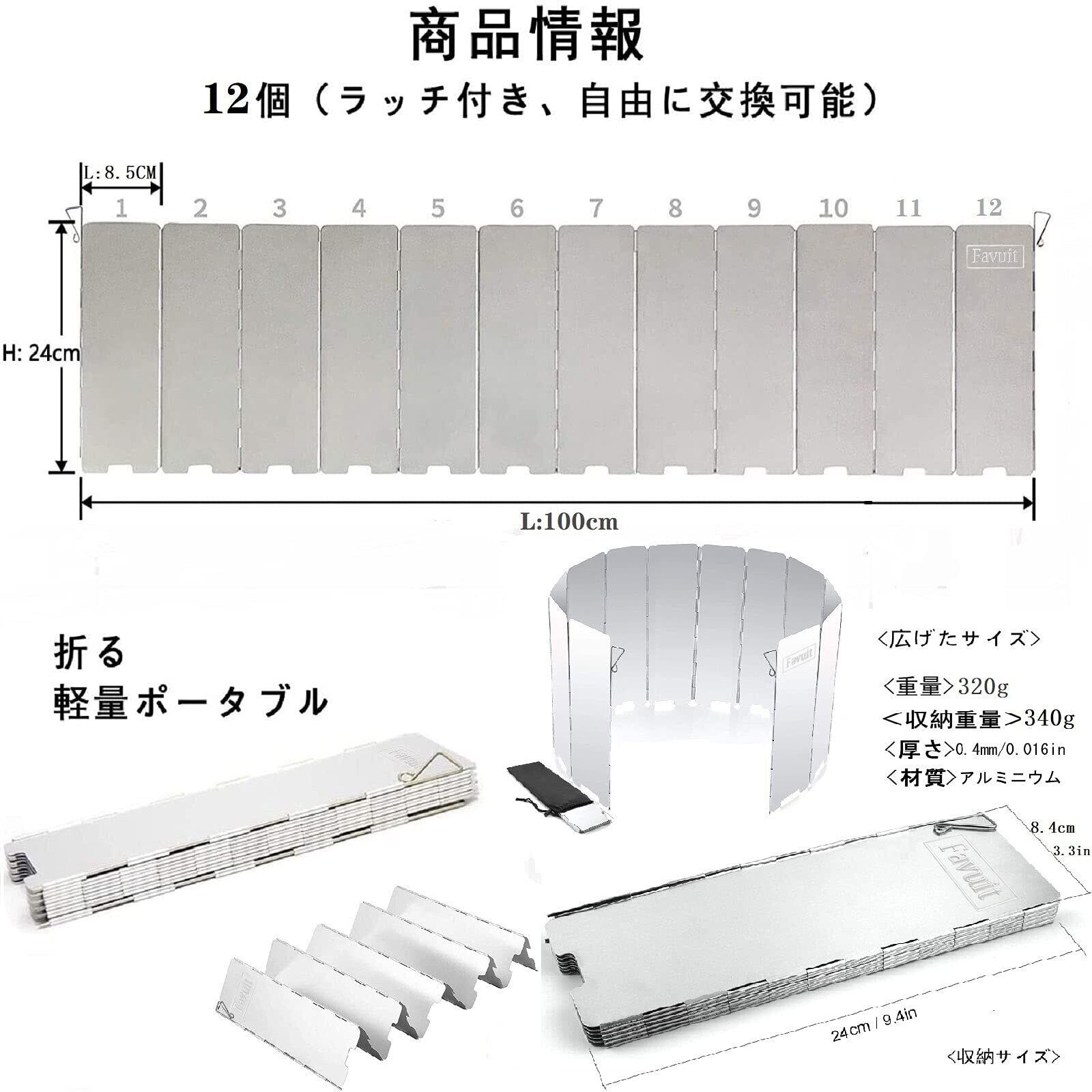 【簡単でいろいろ使える!】12枚のパネルなので、幅広い範囲を風から守ってくれます。コンロやストーブに合わせて自在にセッティングできます。風の強い日や気温の低い時にも火力を補助します。アウトドアで活躍するコンロ用の風除け板(ウインドスクリーン)です。登山、キャンプ、ピクニック、バーベキューなど様々なアウトドアシーンで大活躍します!炊飯時や、コーヒータイムにも大活躍です。強い横風から炎を守ります。コンロの熱効率up!防災/地震/非常時の装備品にも必携アイテムです。