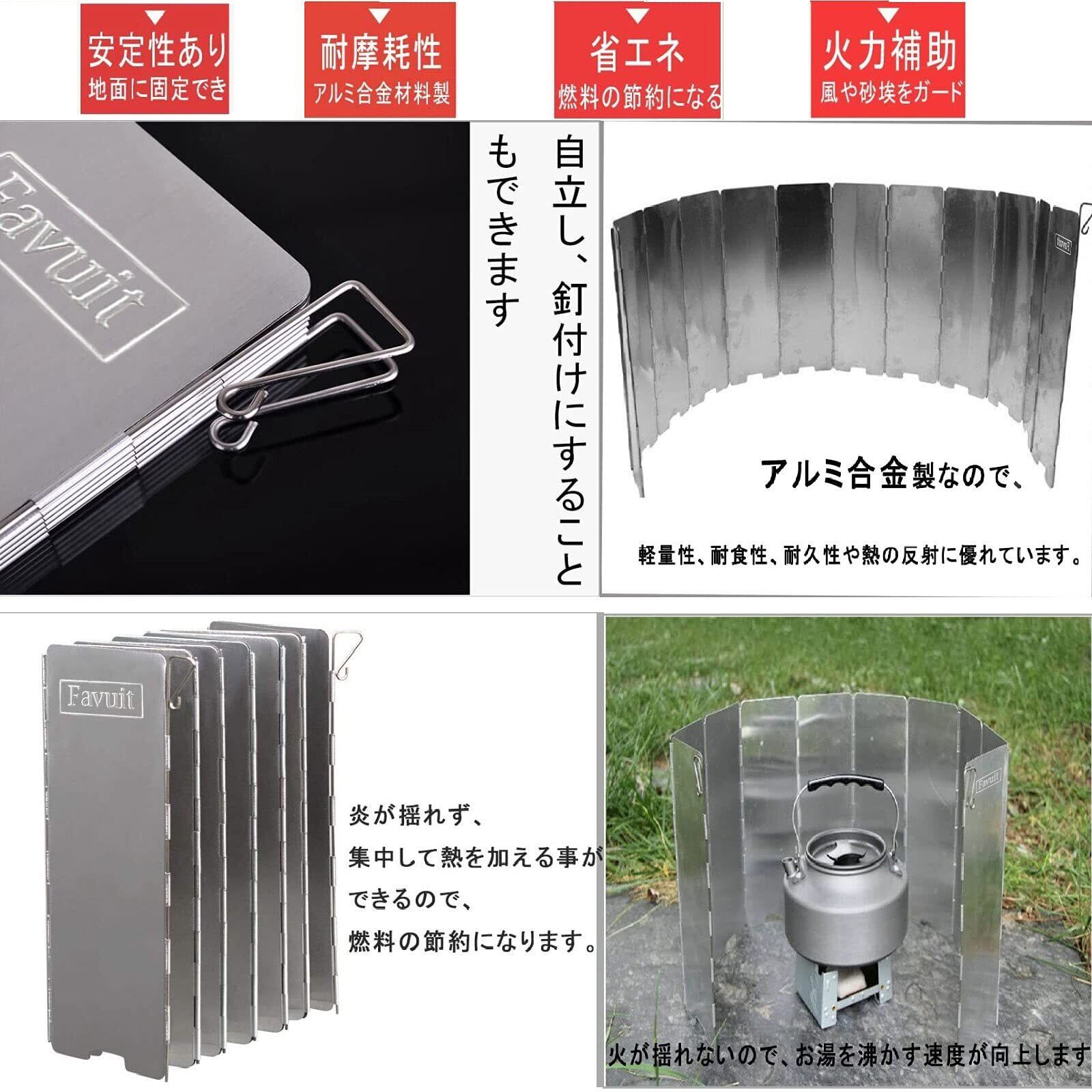 【燃焼効率も向上と油ハネ防止に】風除け(かぜよけ)だけでなく、火力の周りを囲むことによる燃焼効率が向上するため、燃料の節約にもなります。アウトドアシーンでは、これまで以上に必要な必須アイテムとしてご愛用いただければと思います。 ストーブやバーナーの熱を反射し、熱効率を格段に向上させ、料理、お湯を沸かしたりする時間を短縮し、寒い時期に暖を取るにも大変役に立ちます。料理や焼肉時に跳ねる油はやけどや汚れの原因になりますが、これ一枚あれば油ハネ防止板としても使えます。室内でもアウトドアでもご使用いただけます。