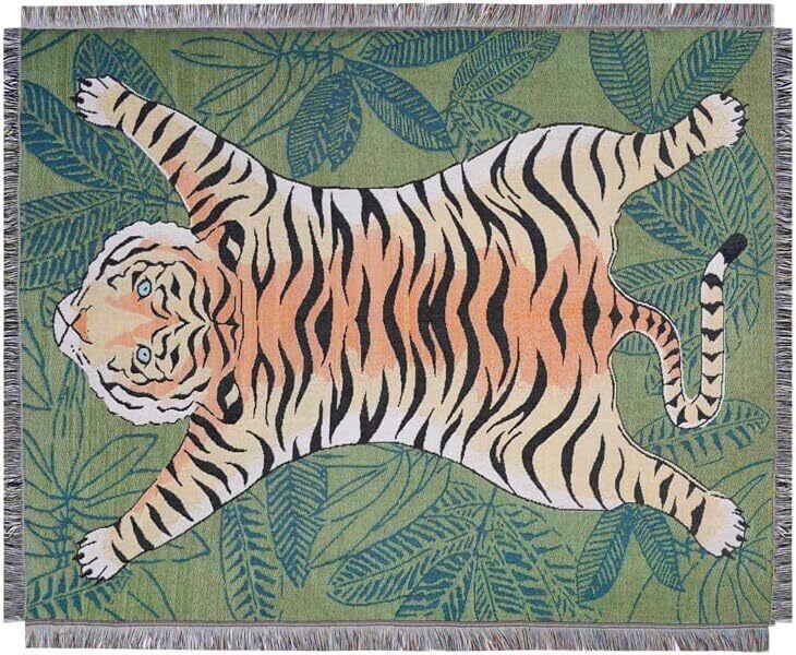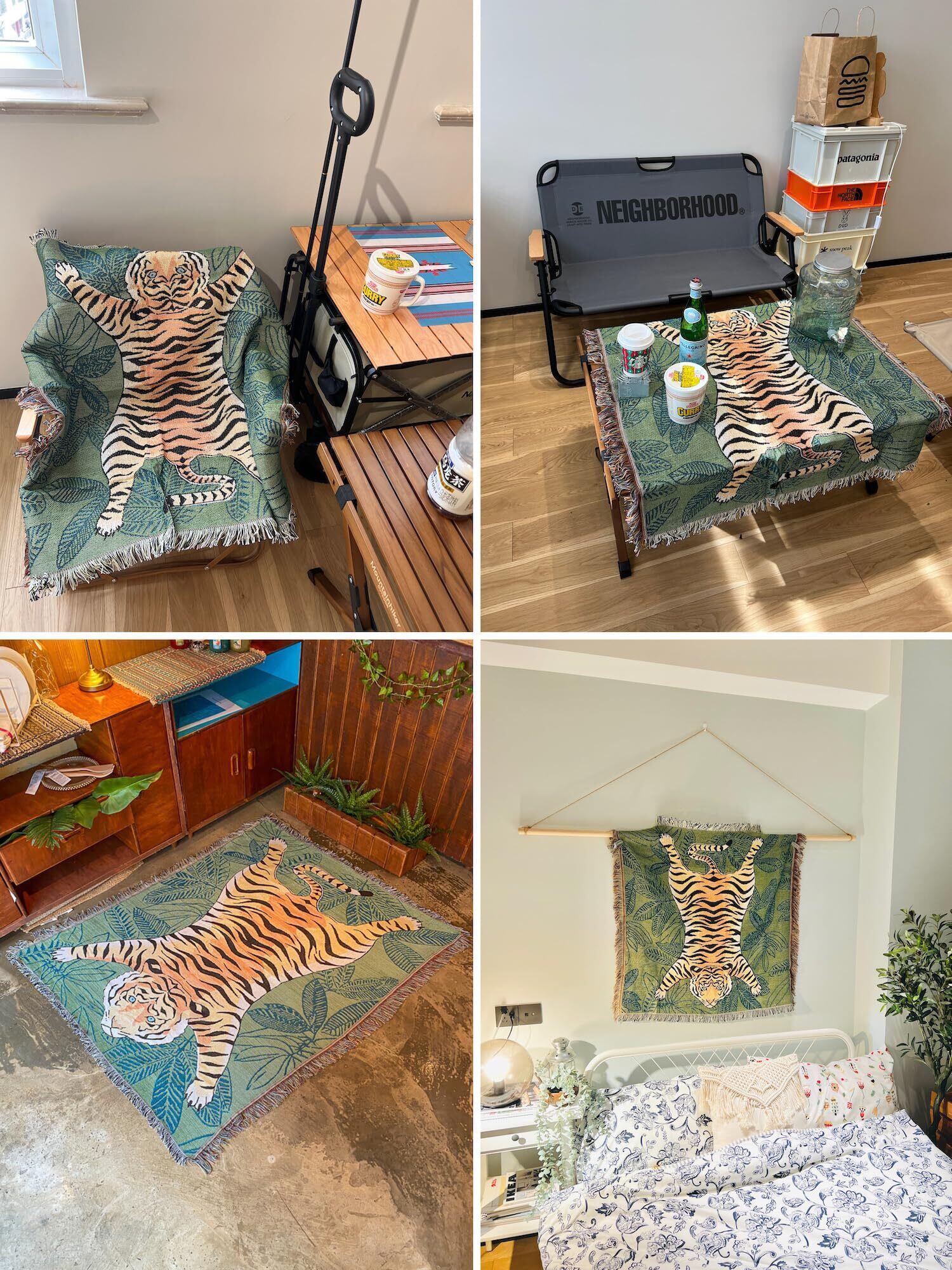 タイガー ラグマット キャンプ アウトドア トラ インテリア マルチカバー カーペット,ラグ,グリーンタイガー 90X90cm