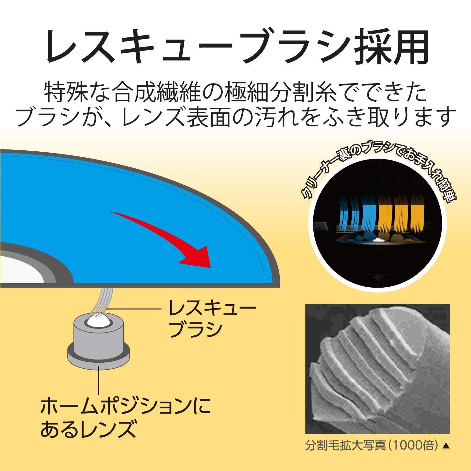 レスキューブラシ採用!ディスクをセットした後のディスク検知時の数回転を利用してレンズをクリーニングできるよう設計されたブラシです。ディスクを認識しないドライブで、ディスクを読み込むきっかけを作ります。