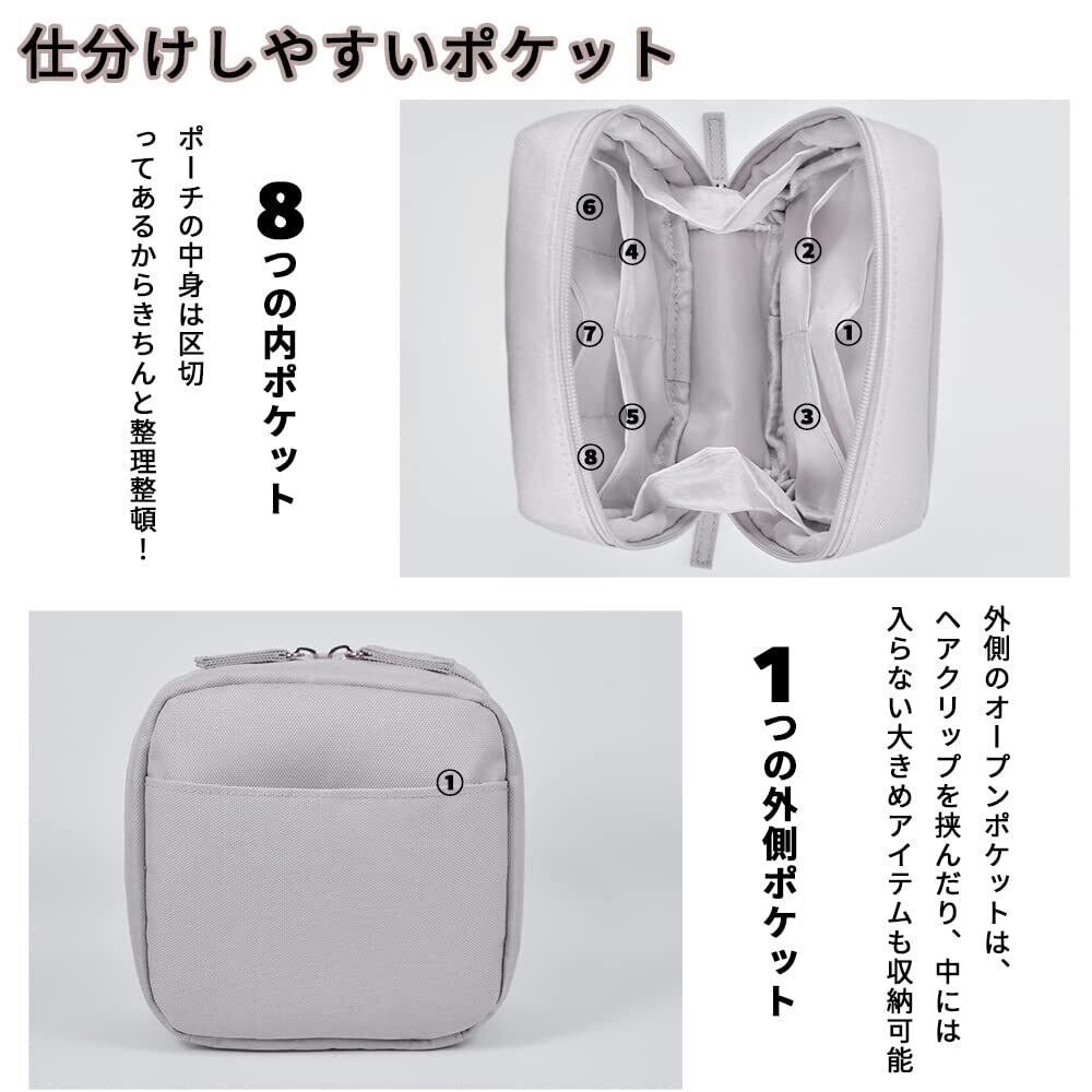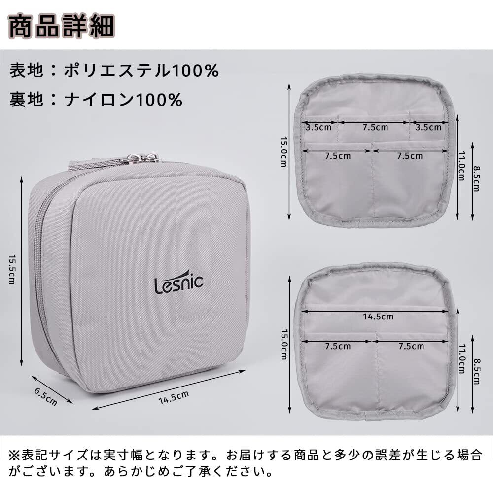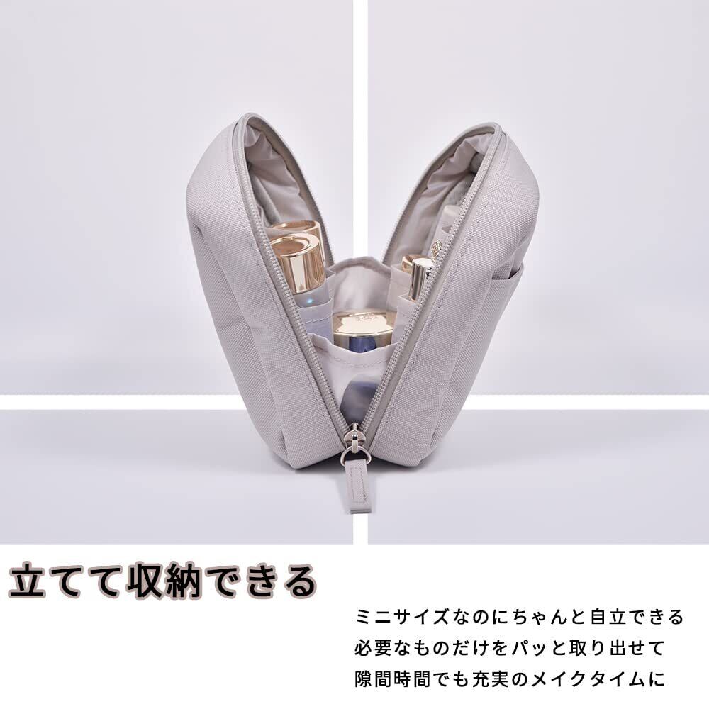 LESNIC 化粧ポーチ 小さめ メイクポーチ 持ち運び コスメポーチ 縦型 自立 化粧品ポーチ 撥水加工 コンパクト 化粧 ポーチ レディース メンズ スクエアポーチ 仕分け ポケット 旅行 出張 バッグインバッグ (ライトグレー)