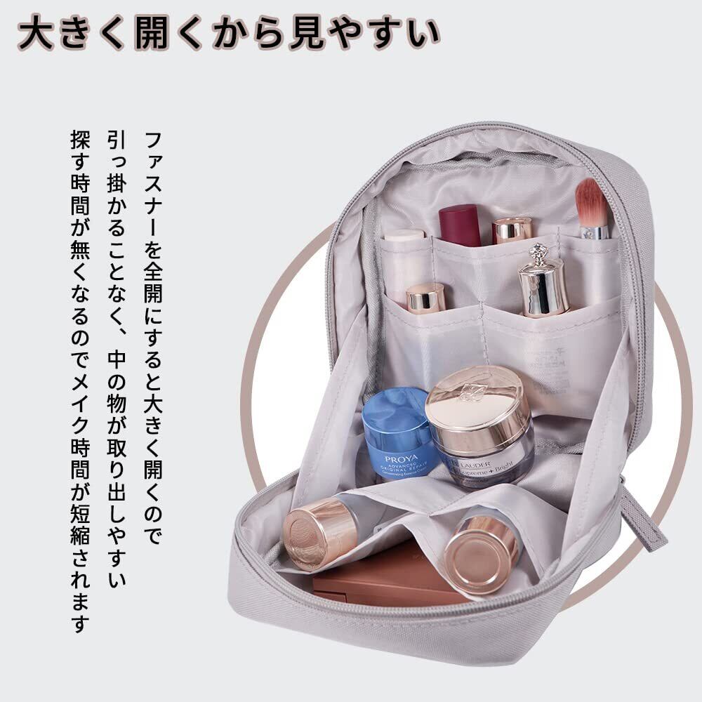 【大きく開いて探しやすい】サイドまで大きく開くダブルファスナー式で、メイク道具の場所が一目でわかる!ポーチの中で無くしてしまいがちなアイテムもスッキリ収まり、必要なものだけサッと取り出せるから探す手間もなくなりメイクの時間も短縮できます。