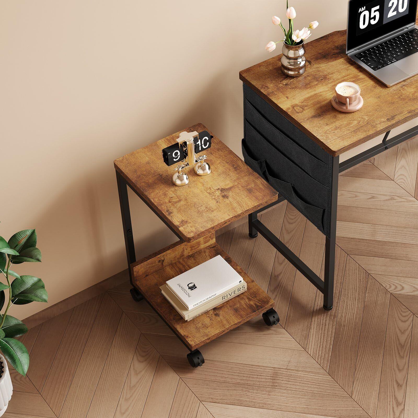 サイドテーブル キャスター付き ベッドサイドテーブル 可移動ベッドテーブル サイドワゴン コの字 テーブル 層幅37×奥行26×高さ53cm(キャスター付き) ビンテージ