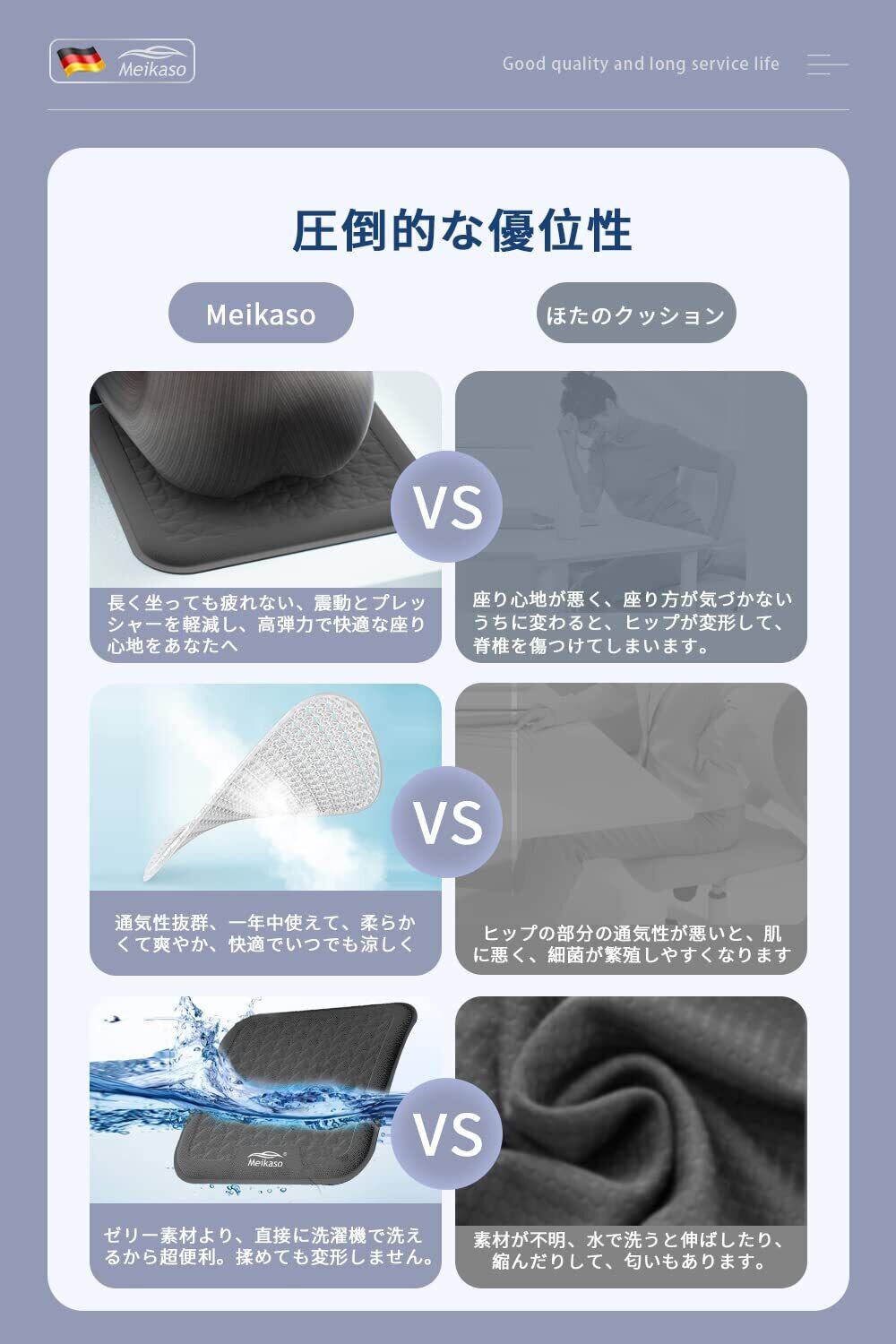 【安心できる高品質商品】Meikasoの座布団商品は高品質な素材を厳選しています。TPE素材は熱可塑性弾力性が持ち、体圧を平均に分散できます、耐久性も優れています。なお、この素材はリサイクル素材で、環境に優しい素材です。