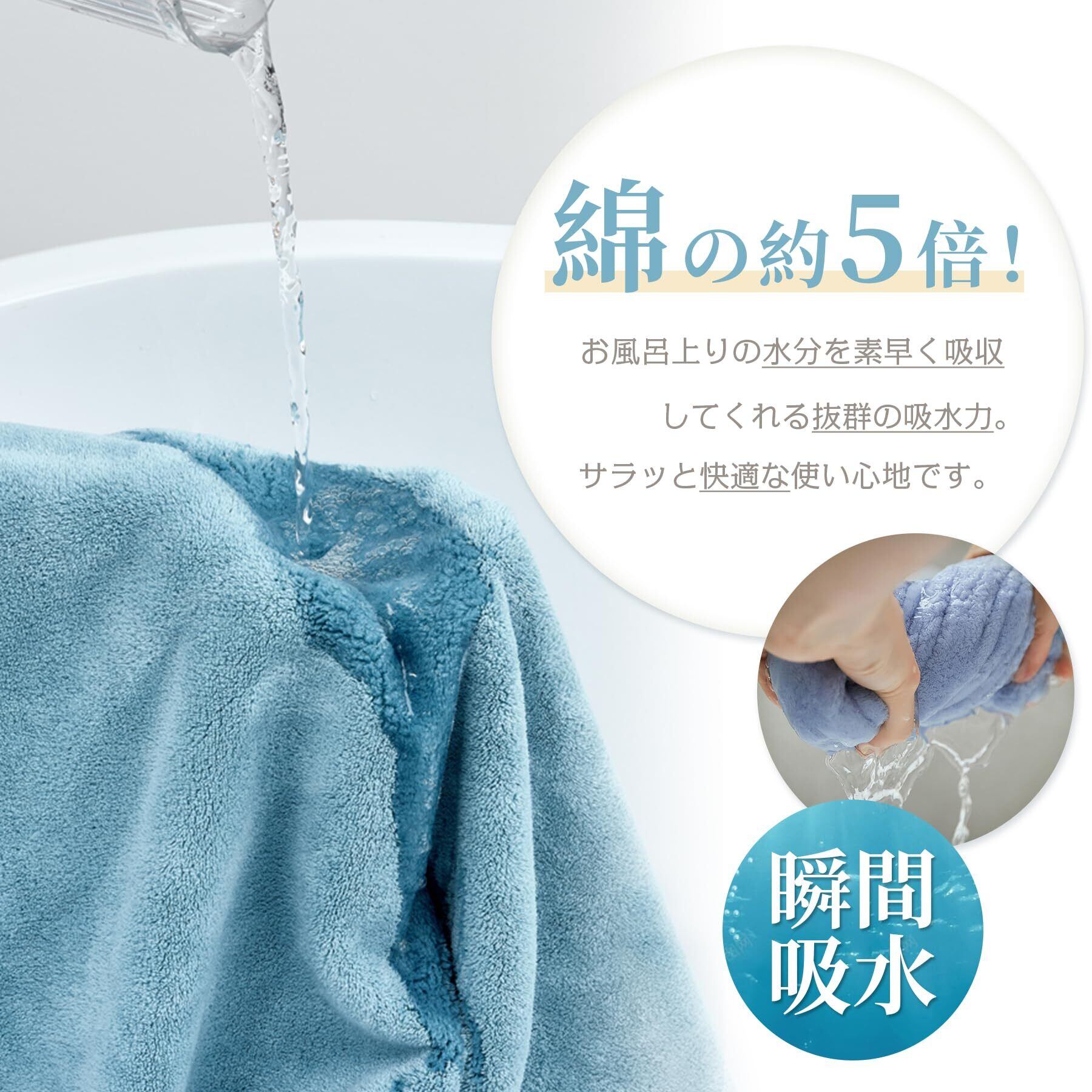 【抜群の吸水性と速乾性】綿の素材より吸水性が優れます。マイクロファイバーは1本1本に無数の隙間があり、その隙間に大量の水分を素早く吸水します。吸水力は普通のタオルより何倍もあり、抜群で瞬間吸水します。通気性は優れて、乾き早いの特徴は注目されるポイントです。梅雨の場合や湿気が多い季節でも、乾き早くていつも清潔を保ちます。洗濯物を乾きにくい時期にも快適で使えます。室内で干しても大丈夫です。