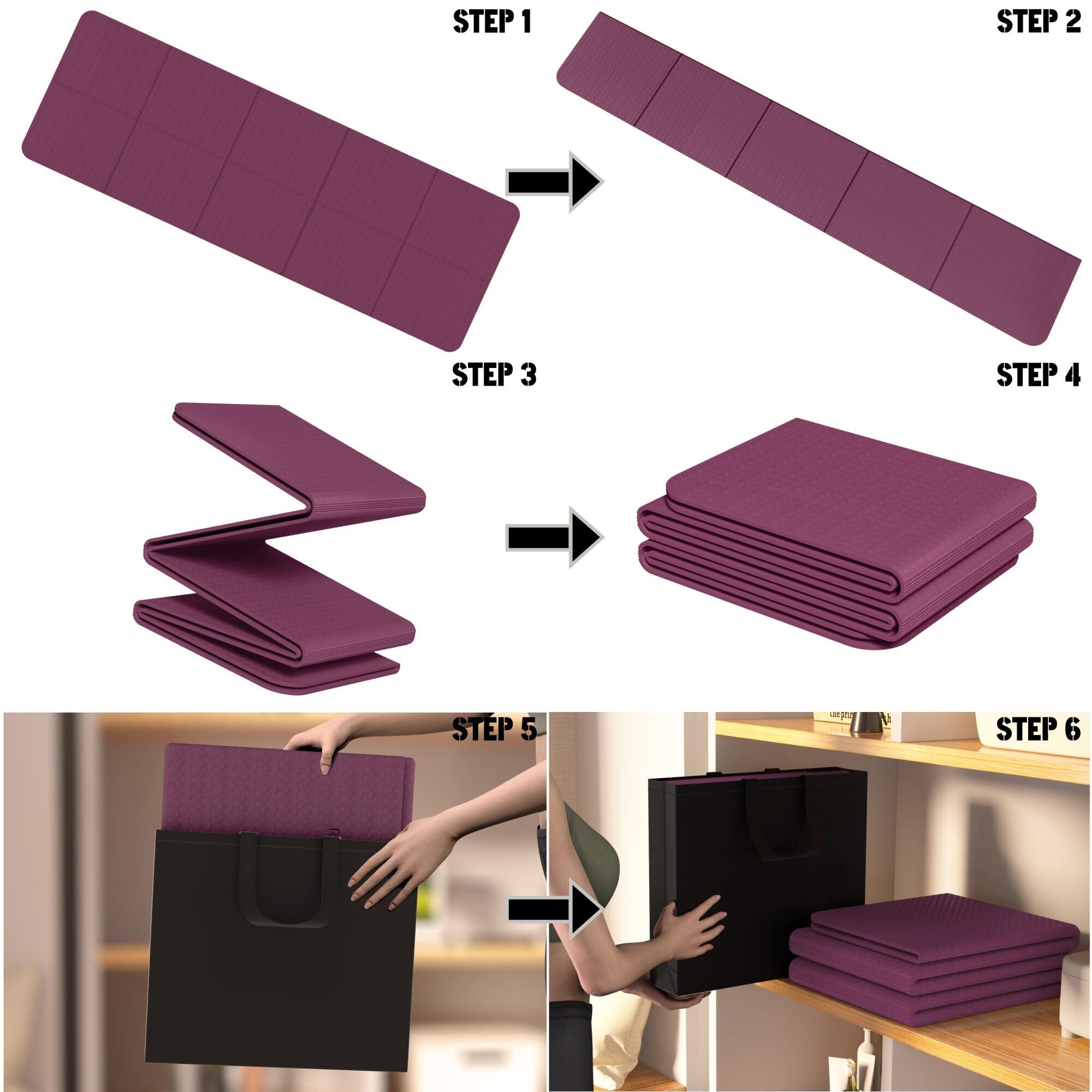 【持ち運び・収納】 収納バッグ付きの折り畳み式ヨガマットは収納や持ち運びにとても便利。