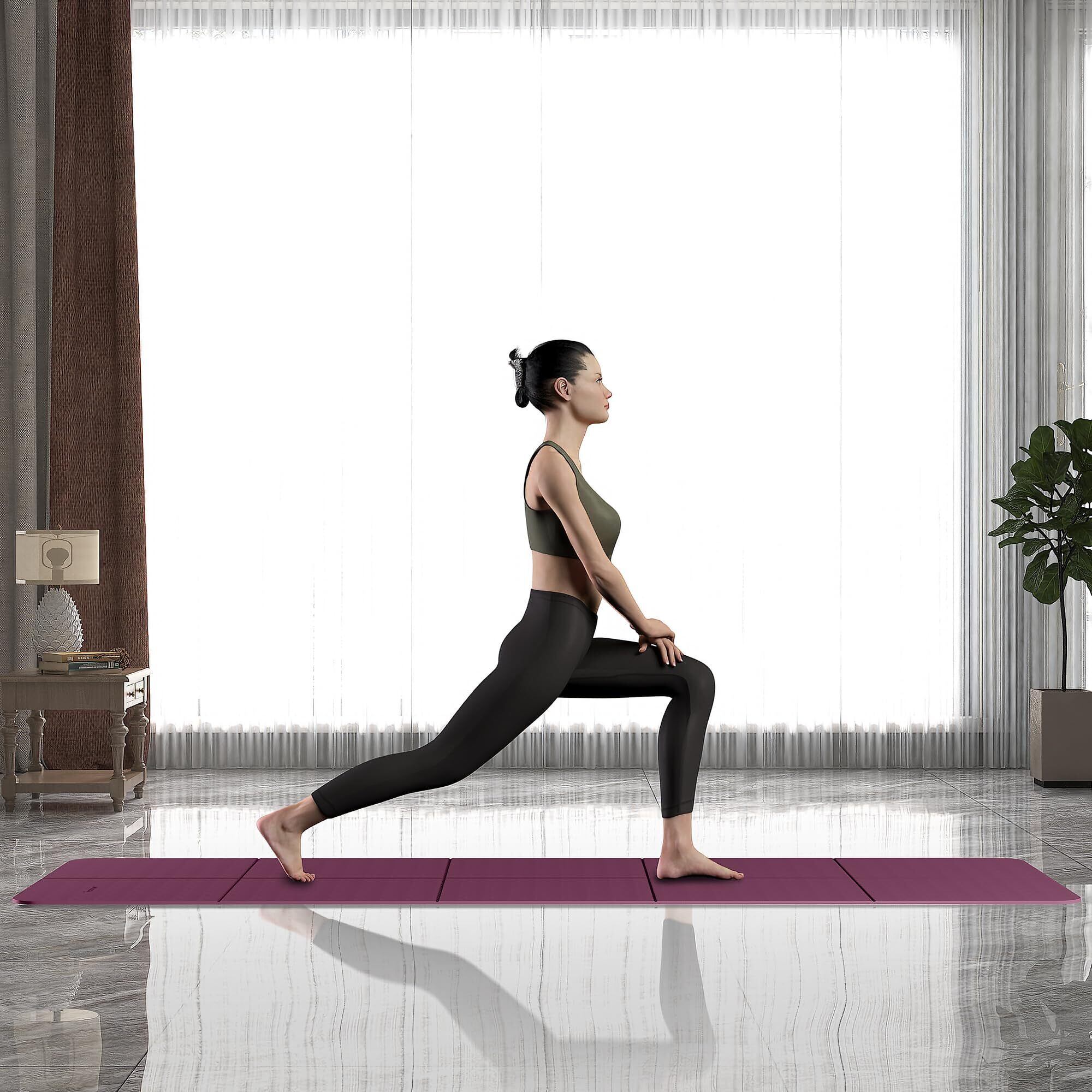 【折り畳み式】丸めてストラップで留める従来のヨガマットとは違い、折り畳み式は素早くコンパクトに収納でき、また折り目は動作・姿勢のチェックラインとしても活用可能。