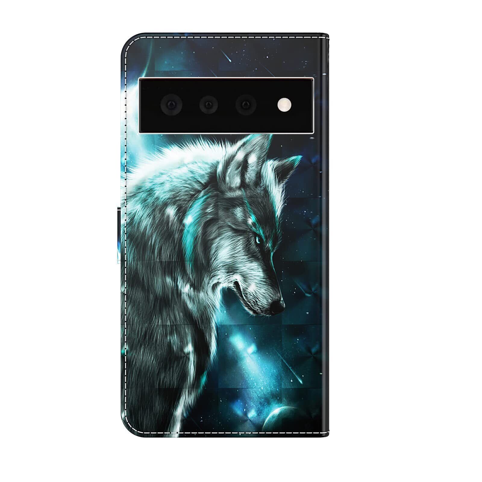 Google Pixel 7a ケース 手帳型 おしゃれ 可愛い 3D プリント 絵柄 ストラップ 付き OYIME 派手な色柄 優雅 カバー 横開き マグネット カード収納 耐衝撃 滑り防止 キラキラ スマホケース グーグルピクセル 7a 手帳型ケース PUレザー 携帯カバー (オオカミ)