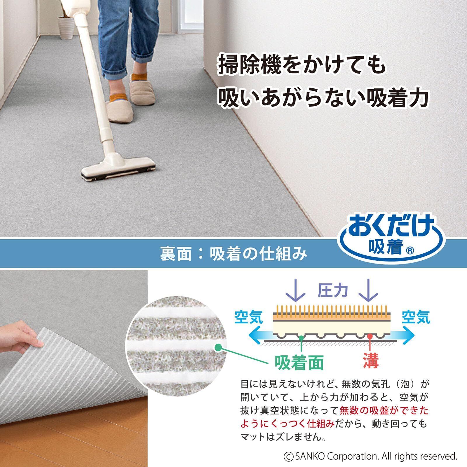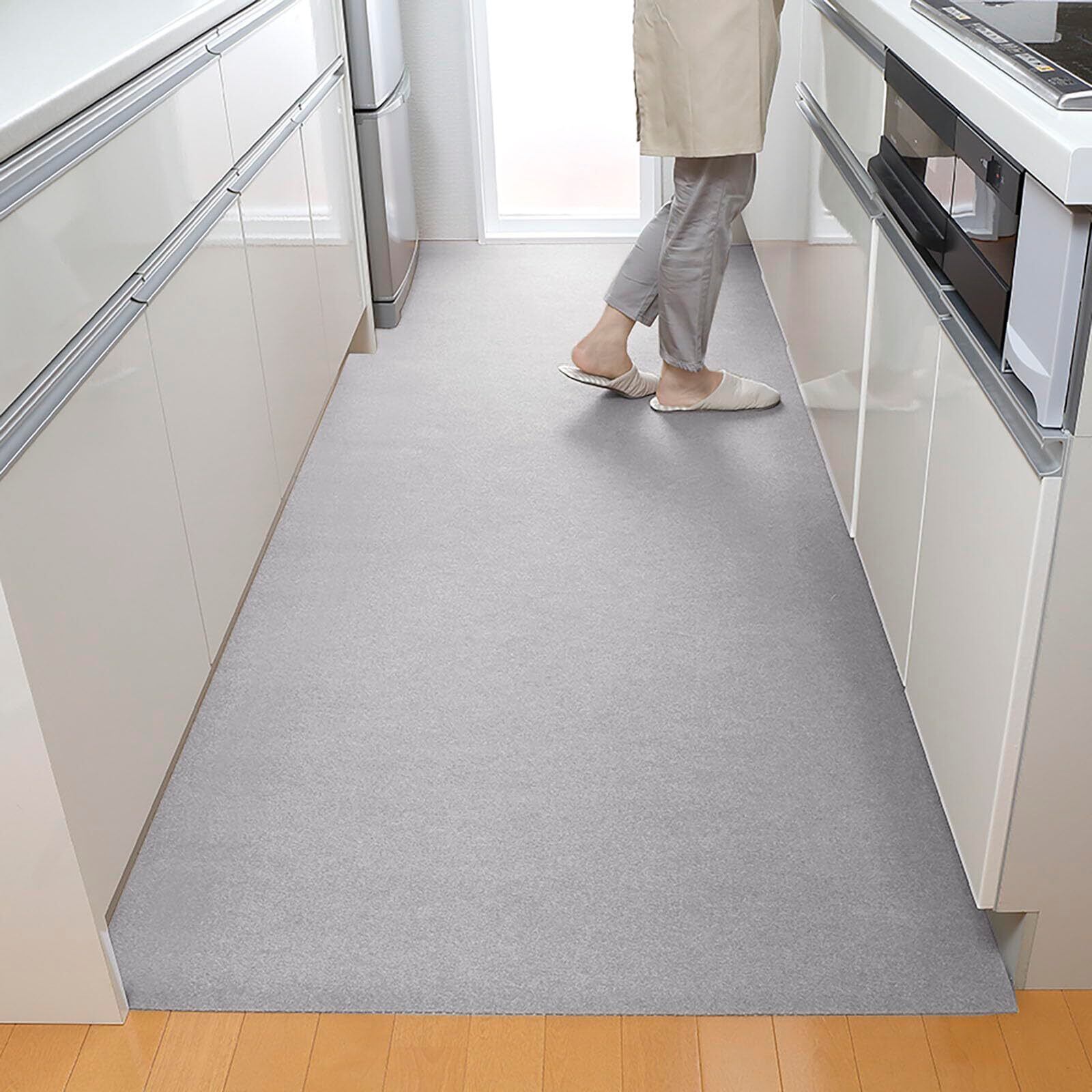 【ずれない吸着タイプ】幅広タイプ・システムキッチンに適している1枚で敷けるキッチンマット。掃除機をかけても吸い上がらない吸着力です。