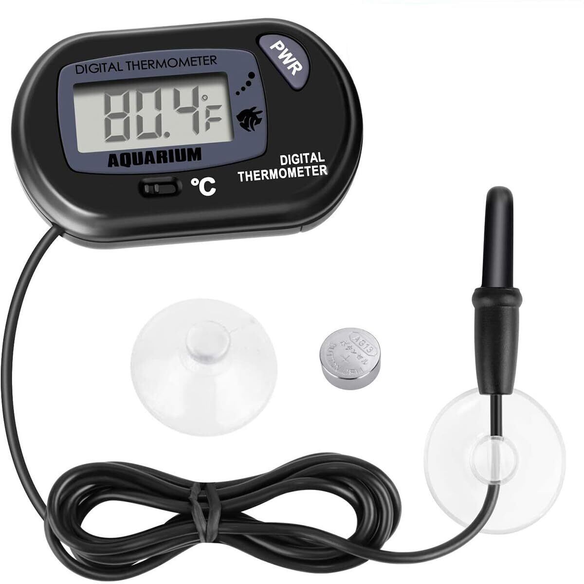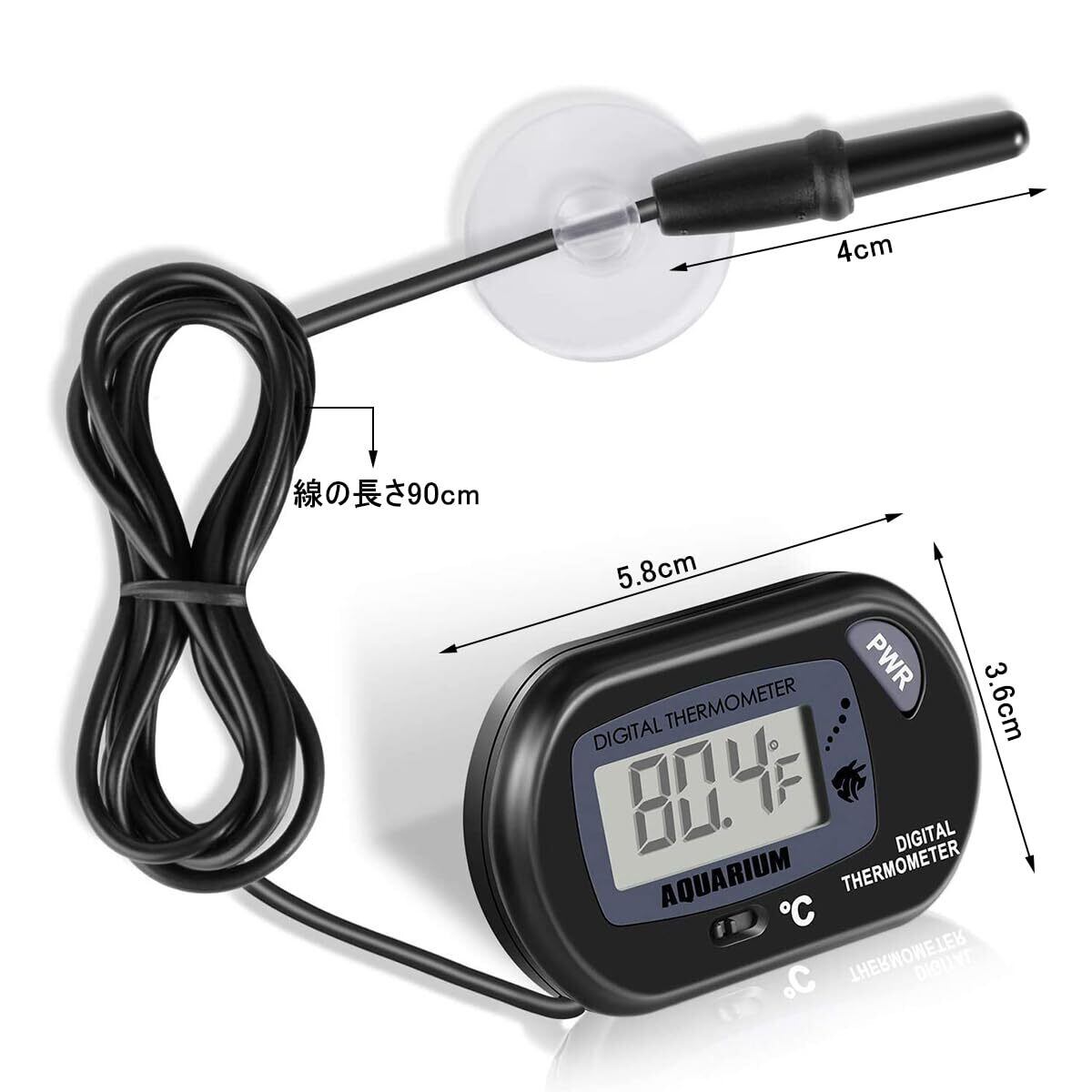 【インストールが簡単】リード線の先に温度センサーが付いており、本体はプロの液晶ディスプレイ。水槽壁面に取り付けても、水槽台に置いてもご使用できます。(水中プローブのみ、水温計を水中に沈めないでください)。