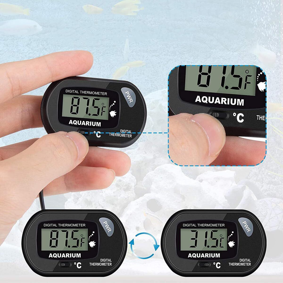 【直感的で読みやすい】液晶画面を読みやすい。誤差は0.1度以内で、日常の温度観測にとって十分です!水槽、アクアリウムやテラリウムの水温管理に最適です。