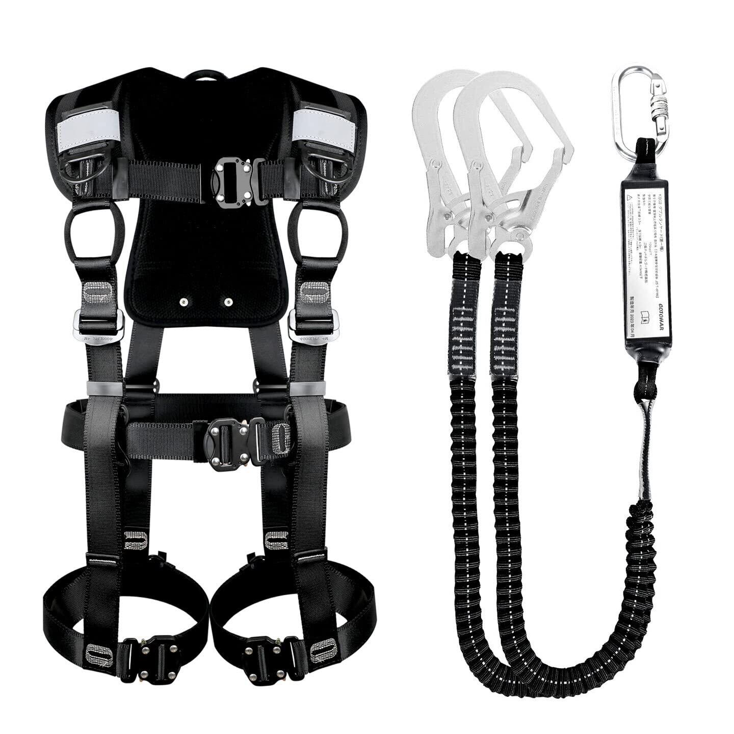 [Cotohar] フルハーネス安全帯 墜落制止用器具 新規格適合 特製軽量バージョン ハーネス安全帯 2丁掛け 簡単に着脱可能 新規格 セット 安全帯セット 伸縮式ダブルランヤード付き 柱上作業 建設工事 電力工事の外壁洗浄などの一般高所作業 日本語説明書 収納袋付き (アルミニウム合金)