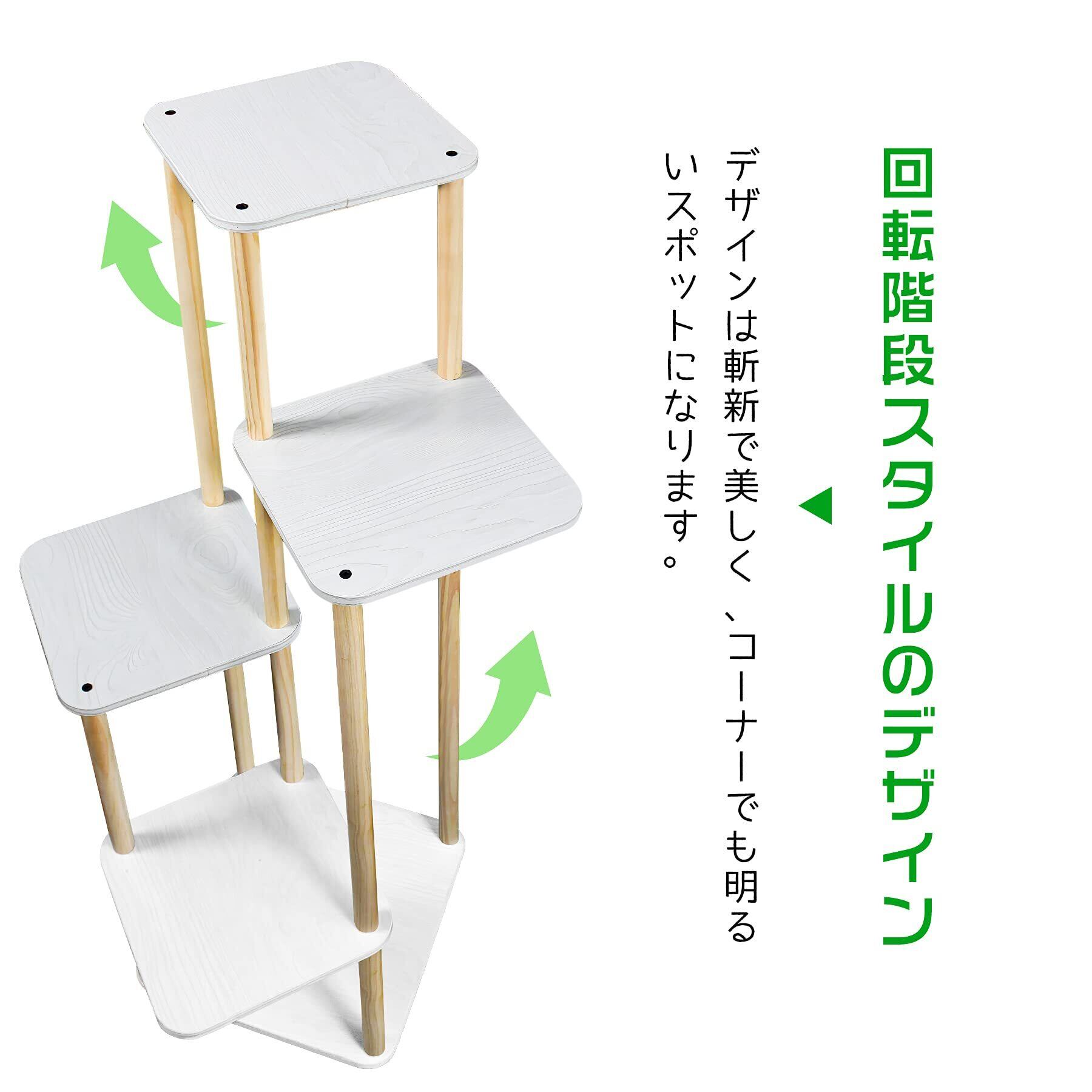 フラワースタンドの全体的な外観デザインはシンプルで斬新です,おしゃれ。木の板の各層はらせん状に配置されます,各植物に独立した成長空間を持たせ、完全に表示させます。