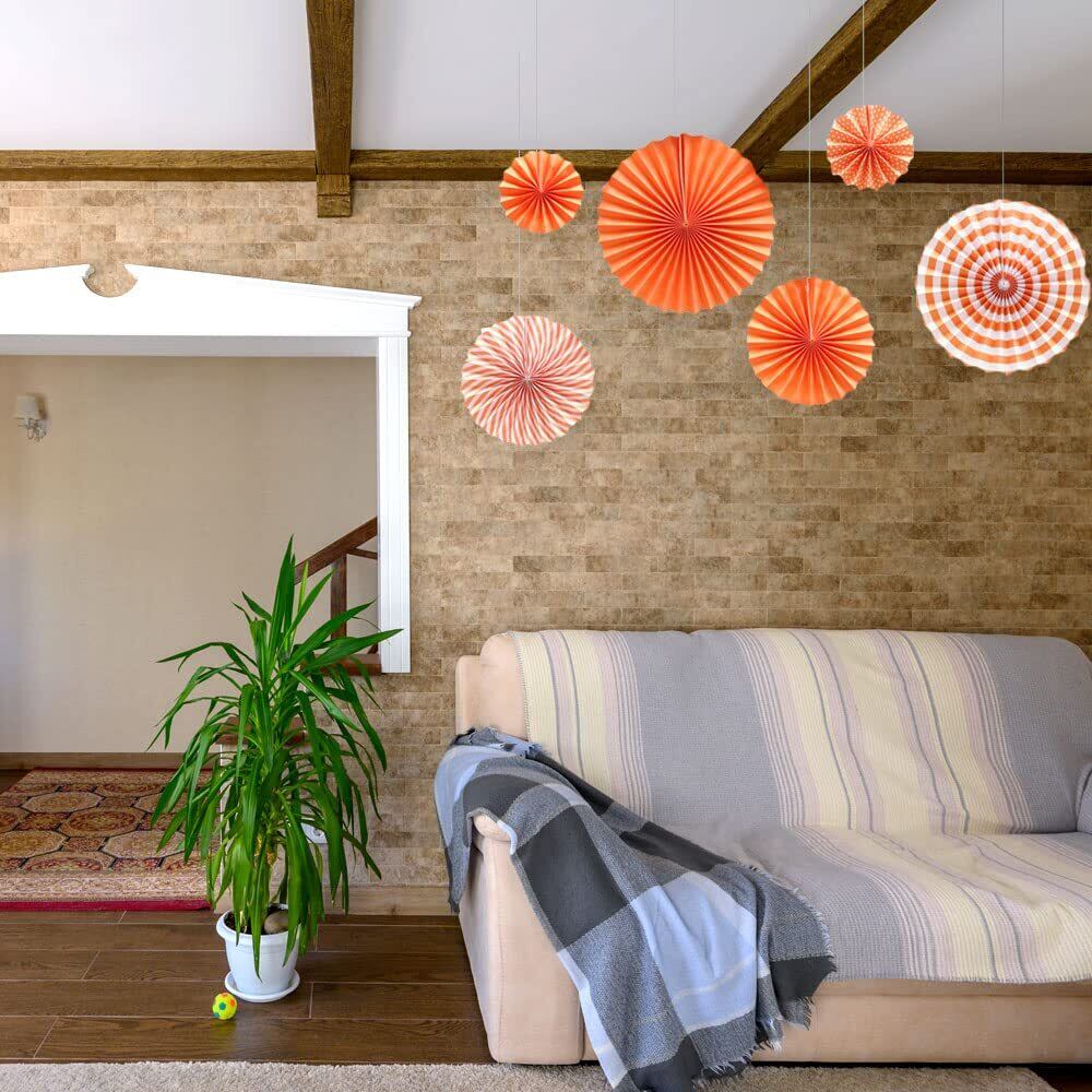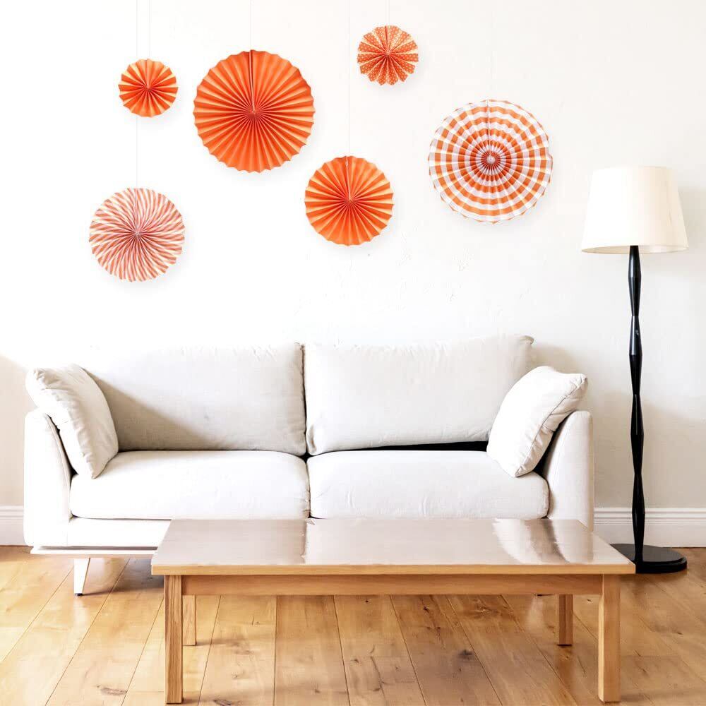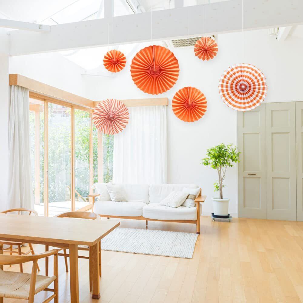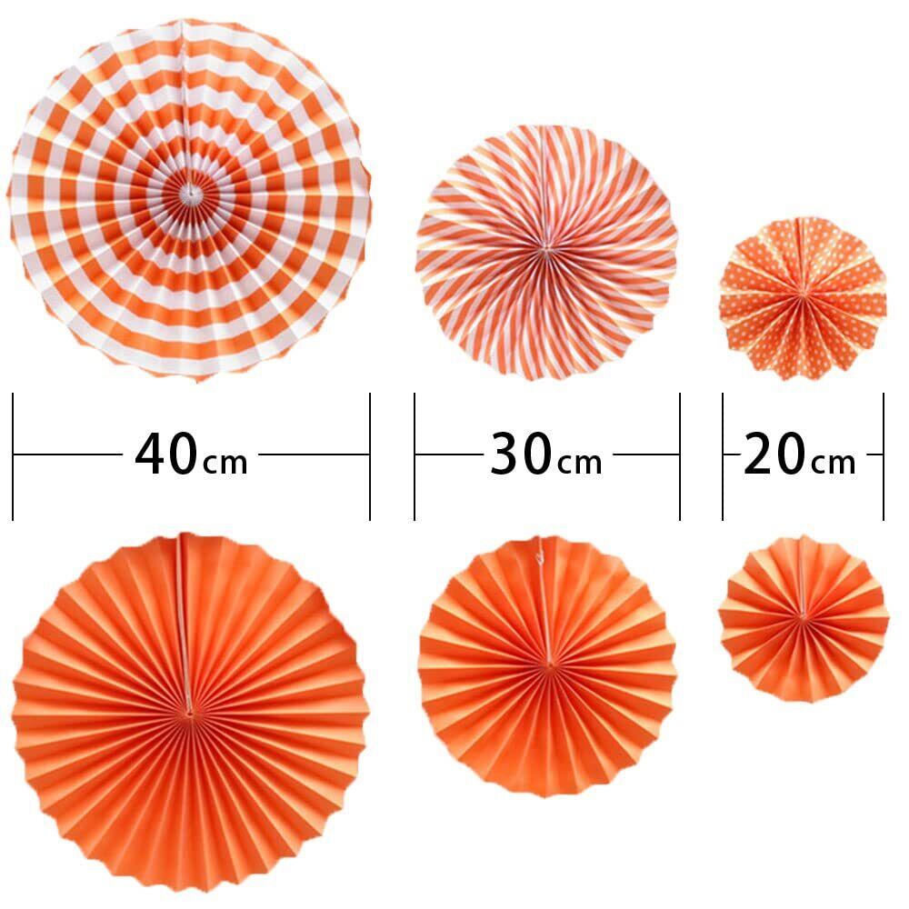 ペーパーファン 誕生日 飾り付け 結婚式 パーティー ハロウィン クリスマス 飾り デコレーション 3サイズ 6個セット 予備タコ糸つき (オレンジ)