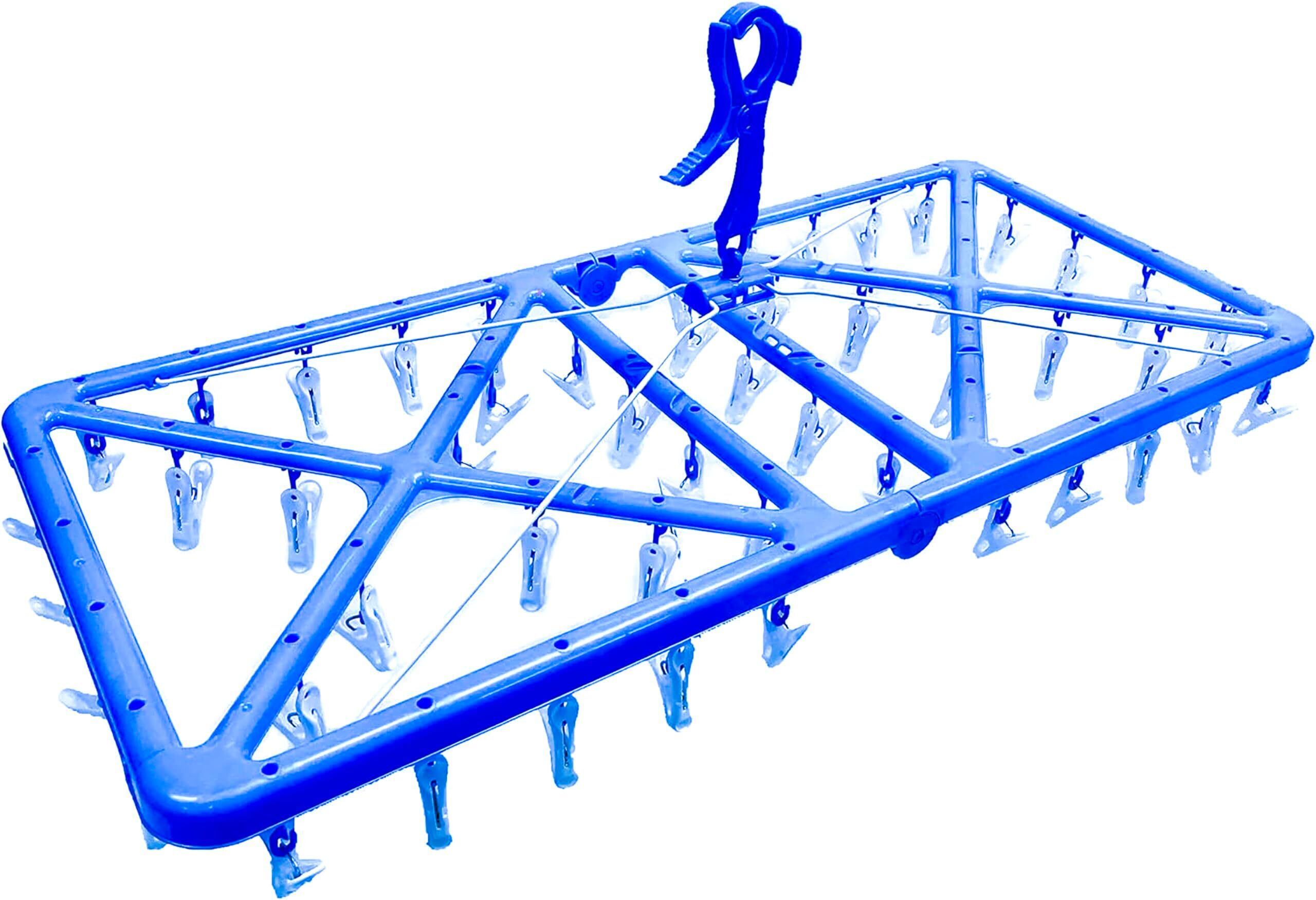 水勘製簾所 洗濯 物干し ワイヤー角ハンガー 折りたたみ式 ピンチ 52個付き 部屋干し カモイフック付き ブルー 約幅84㎝×奥行39㎝×高さ30㎝(展開時)