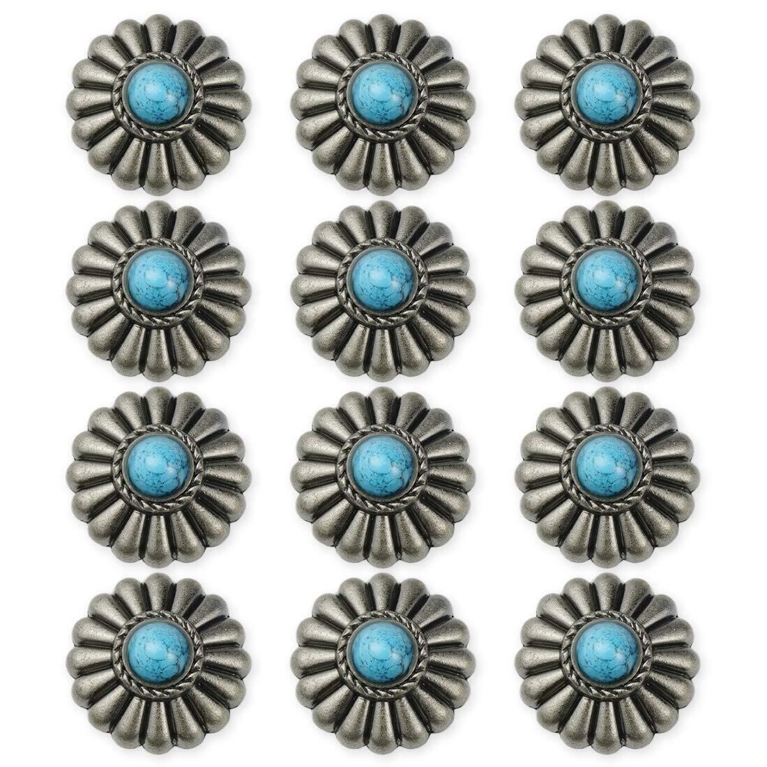 ターコイズコンチョボタン・ミニフラワー12個セットです。留め具として、ネジを12個付属します。