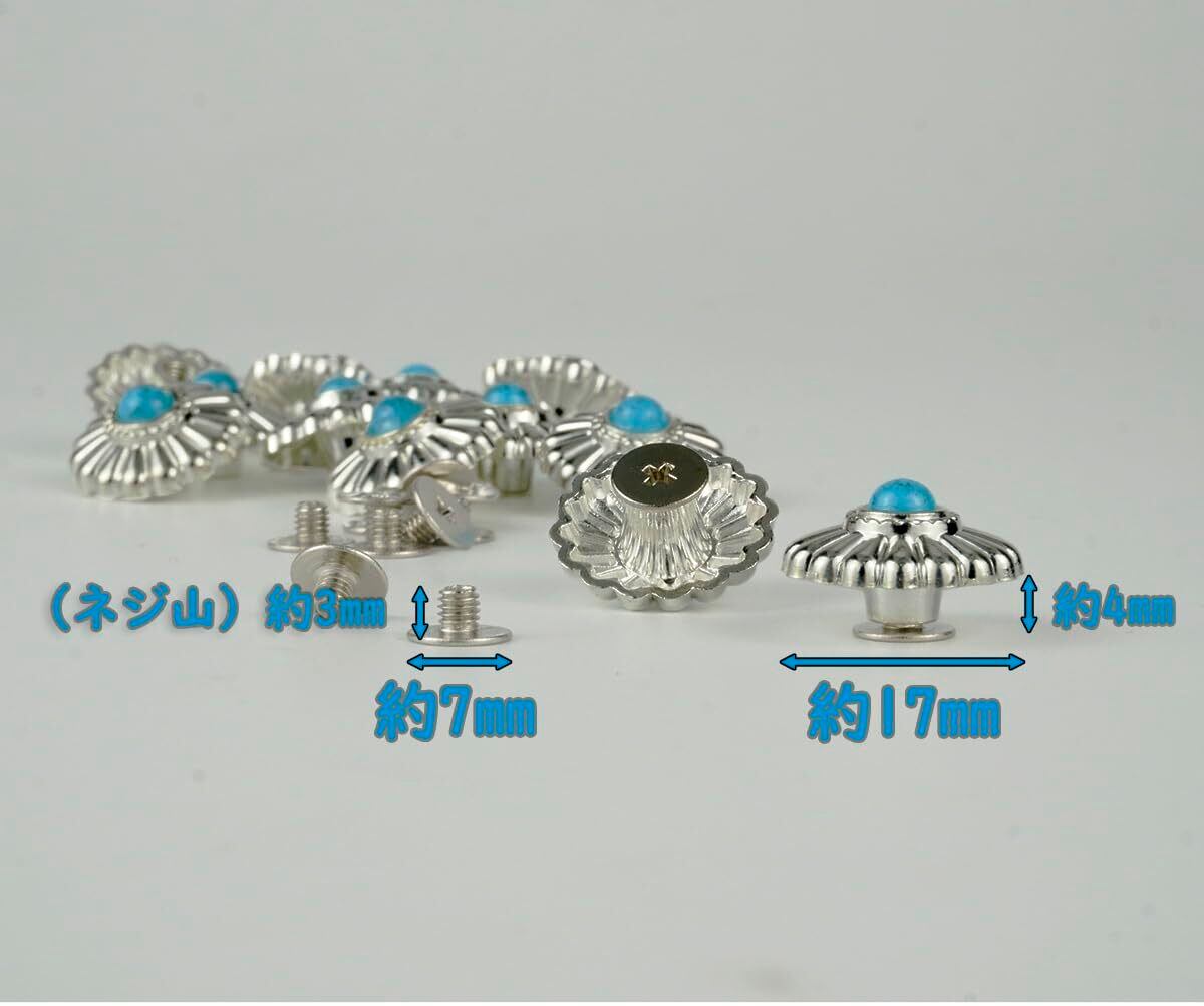 コンチョのサイズ:直径約17mm(画像にご参考ください) カラー:ターコイズブルー・グレー仕上げ 材質:合金