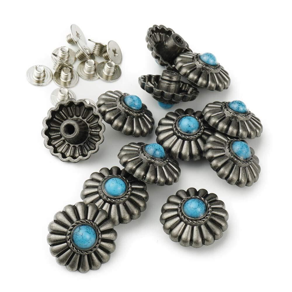 コンチョ ボタン ターコイズ 12個セット 小菊 ミニフラワー 17mm ネジ 付き レザー クラフト 財布 バッグ (グレー)