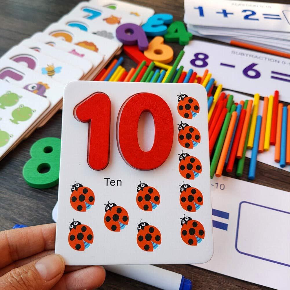 木製のスペル英語単語と数学学習ゲームのおもちゃ ,数字 ペグボード並べ替えABCDブロック マッチングゲームモンテッソーリジグソーパズル知育学習教育玩具ギフト用 幼児ベビーキッズ (数学)