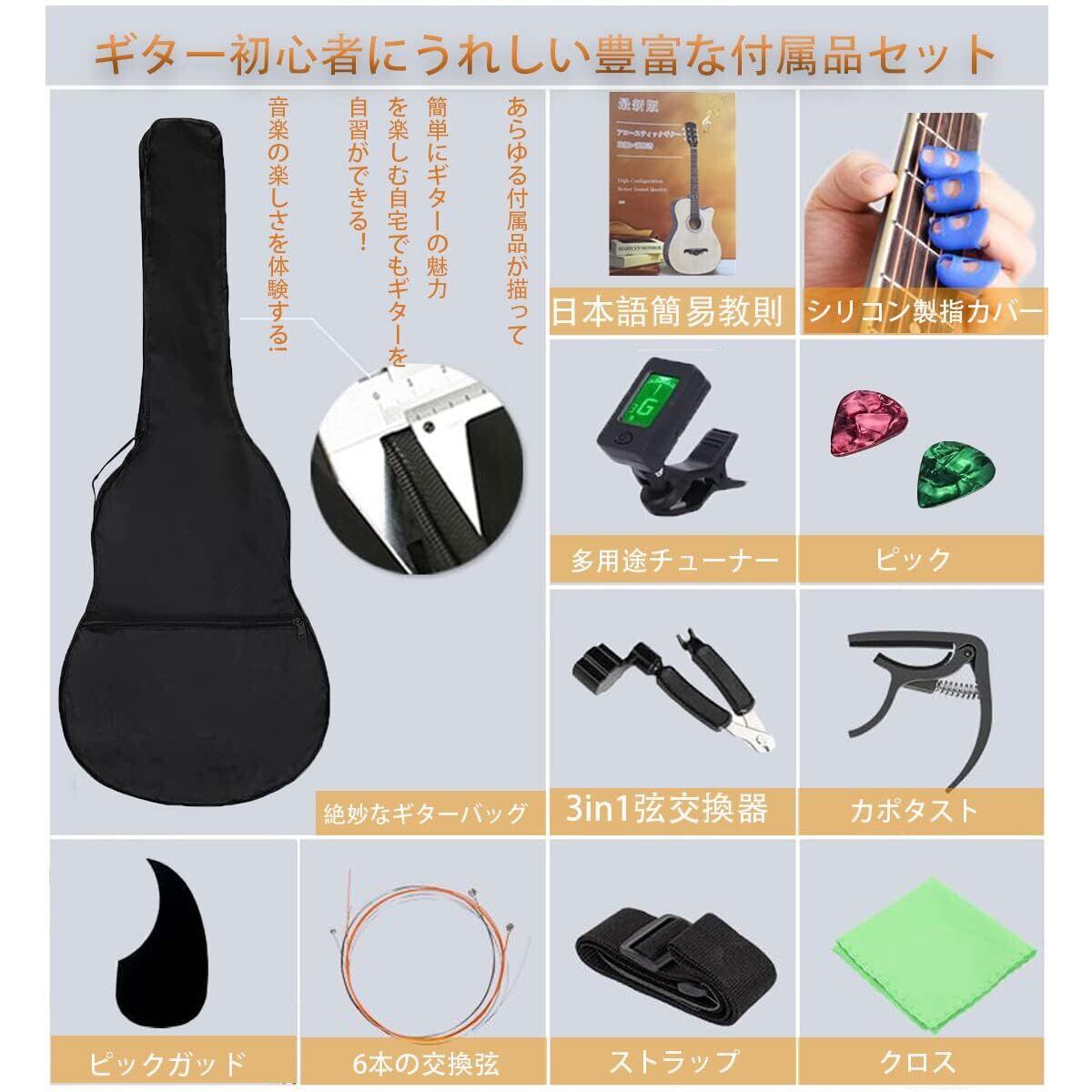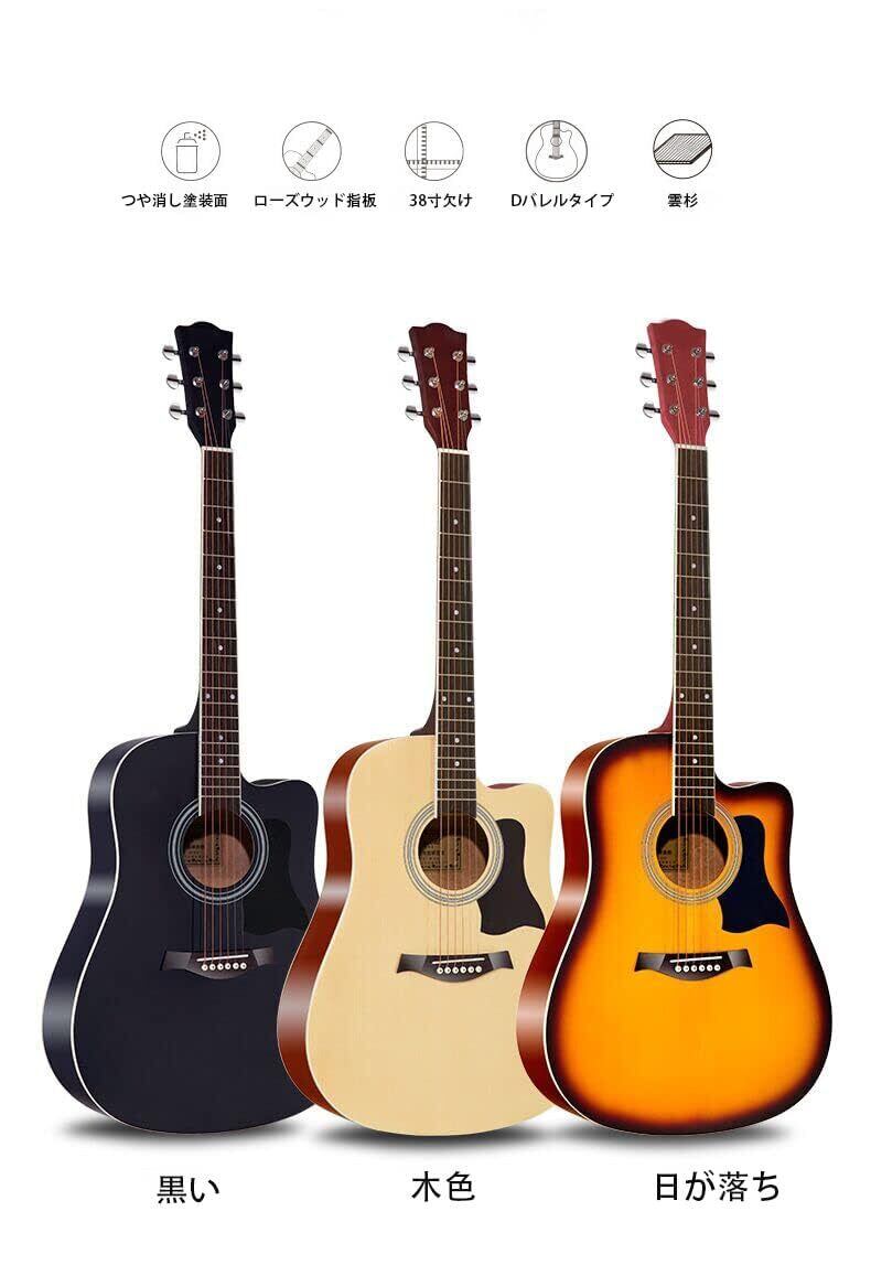【高品質できる材質アコースティックギター】アコースティックギターは特殊で高度なポリマー技術赤銅によって、巻き弦を汗や体の油分、汚れから守り、腐食を防止する、弾き心地がよく、より繊細で柔らかいメロディを演奏することができます。このセットが手元に届けばすぐにギターライフをスタートできます。温度や湿度の変化に全く影響を受けないのでアウトドアでガンガン楽しめます。車載、旅行に最適のギター。
