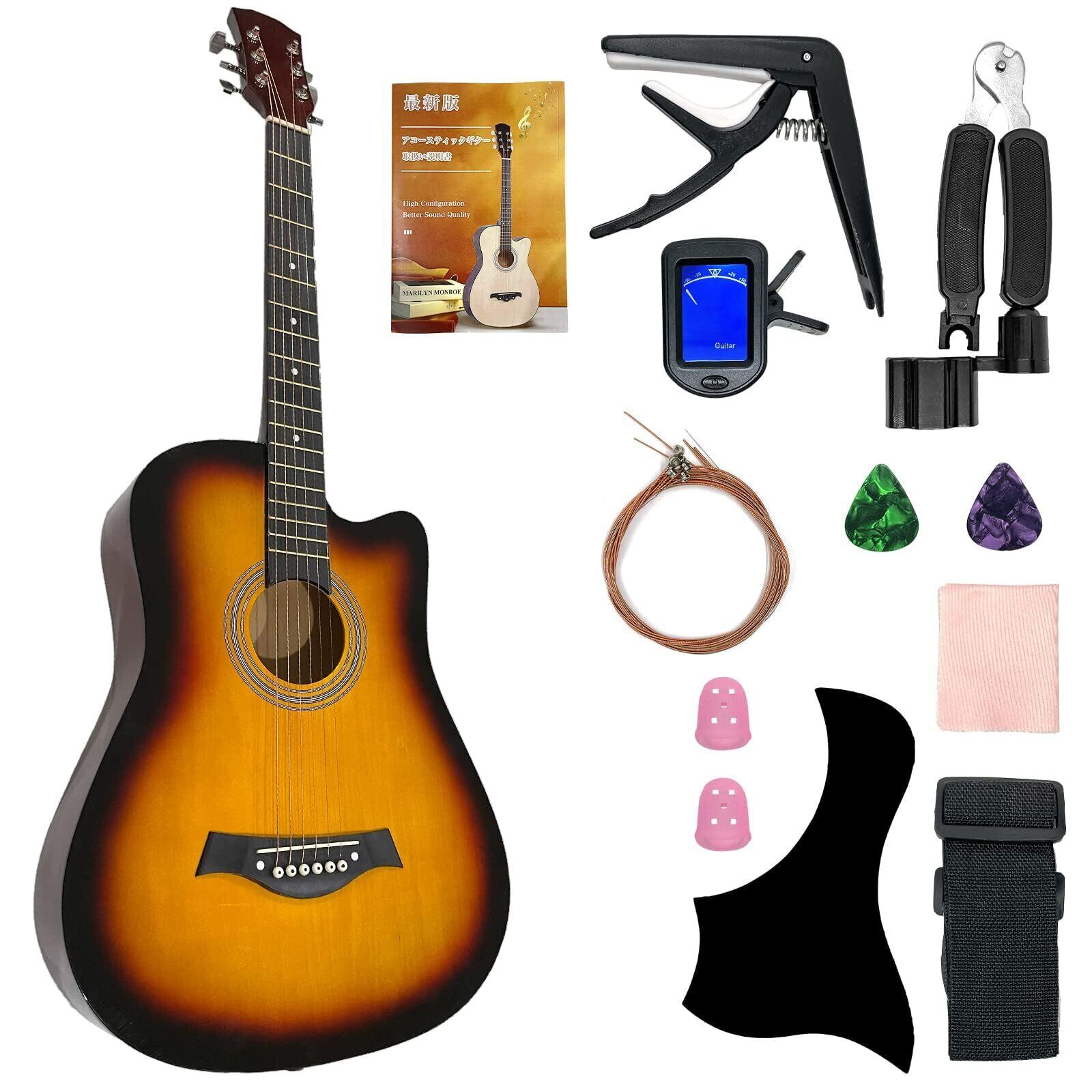 ギター 初心者セット アコースティックギター ギターセット 38インチ ギター アコギギター 入門練習ギター 学生 子供 大人用 ギター 初心者 入門用 アコギ クラシックギター チューナー ソフトケース カポ ピック付属 簡易教則本付き (オレンジ, 38インチ)