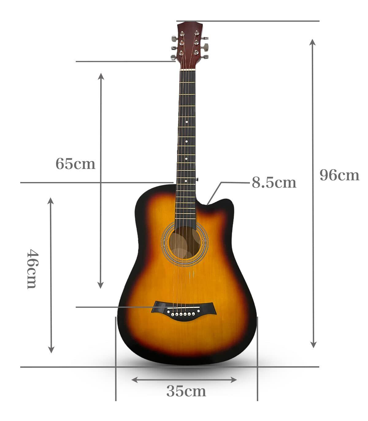 【色んな場合にぴったり】アコースティックギターのボディーは厳選したバスウードで作られています。張られる高品質なスチール弦も良い音ができることを支える。旅行、録音、パーティー、家庭娯楽など、いろんな場面に適しています。アコースティックギターは、様々な音楽ジャンルで使用されています。クラシック、ジャズ、ブルース、フォーク、カントリー、ロックなど、幅広い音楽に使われます。