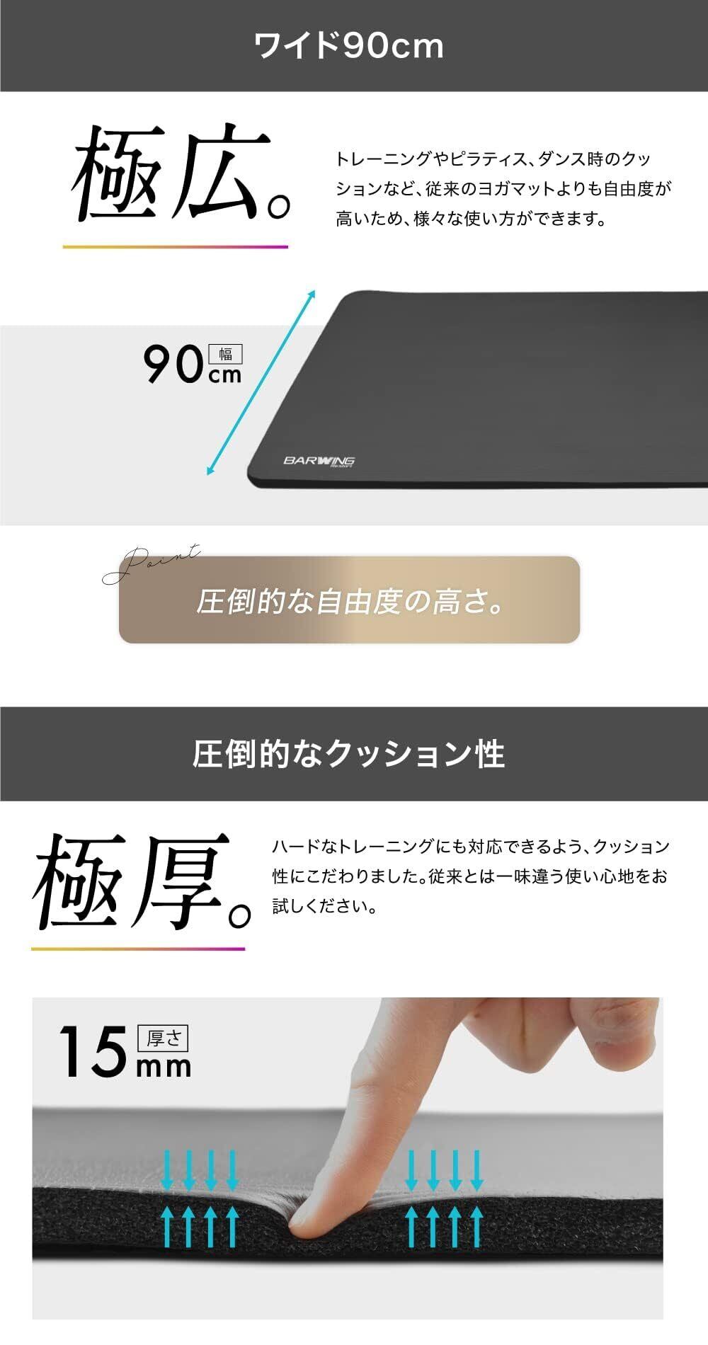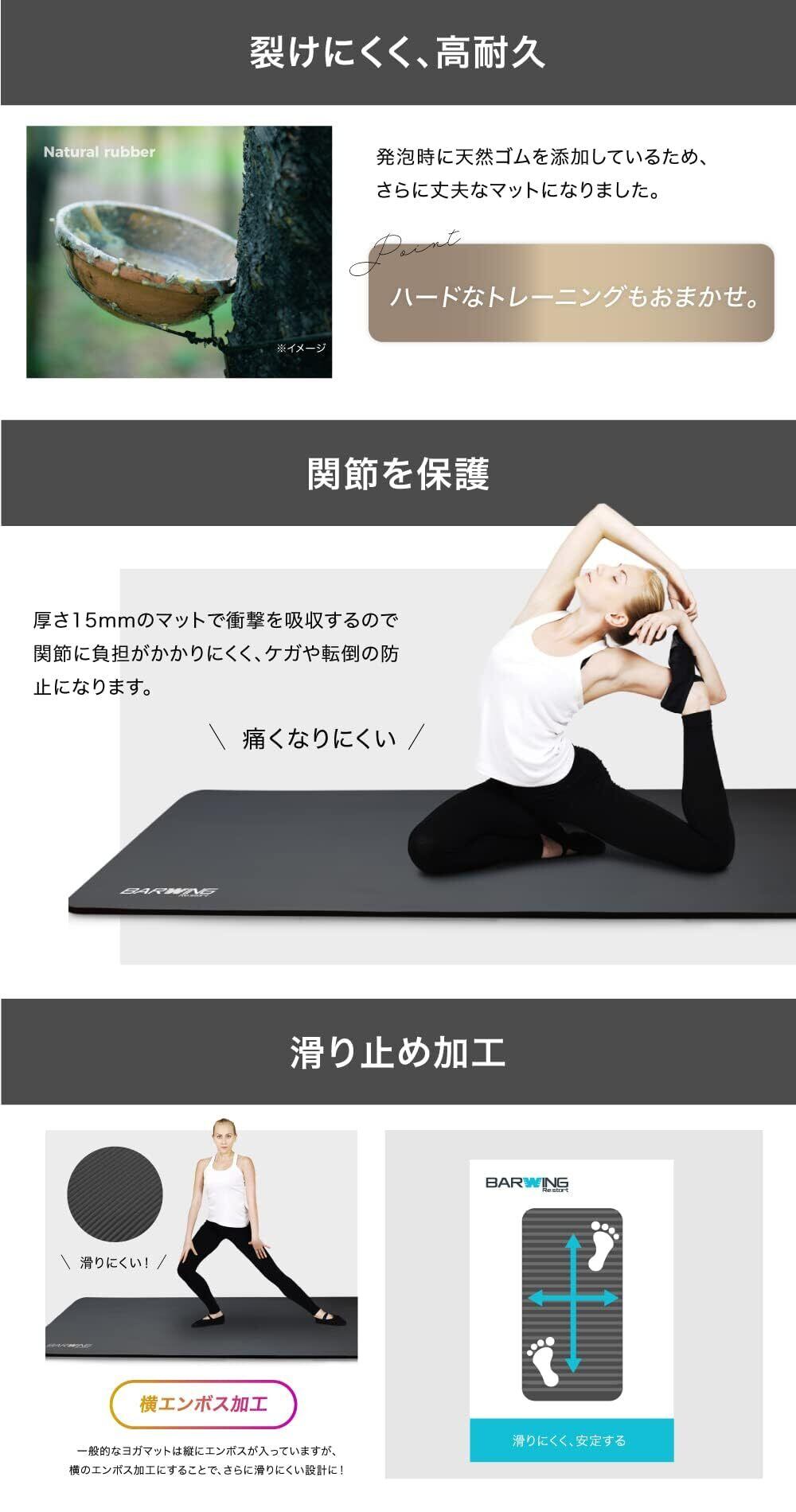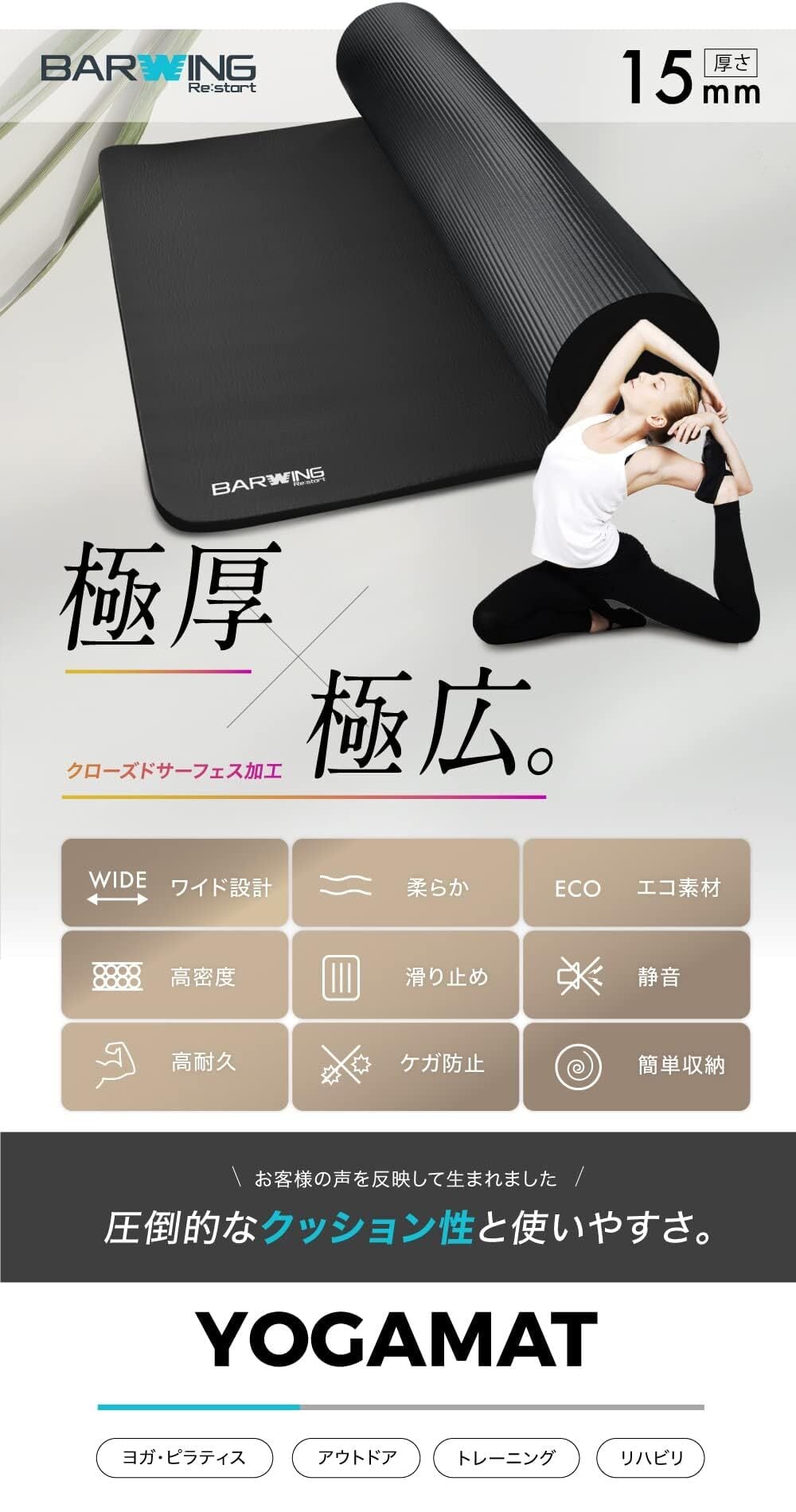 BARWING(バーウィング) ヨガマット 15mm 折りたたみ 幅広 大きめ 厚め ケース 幅90cm トレーニングマット エクササイズ 長さ200cm 高密度NBR ストレッチマット 筋トレマット フィットネス ピラティス 筋トレ ヨガ おしゃれ 人気 極厚 収納バンド 防音 軽量 滑らない 持ち運び スポーツマット