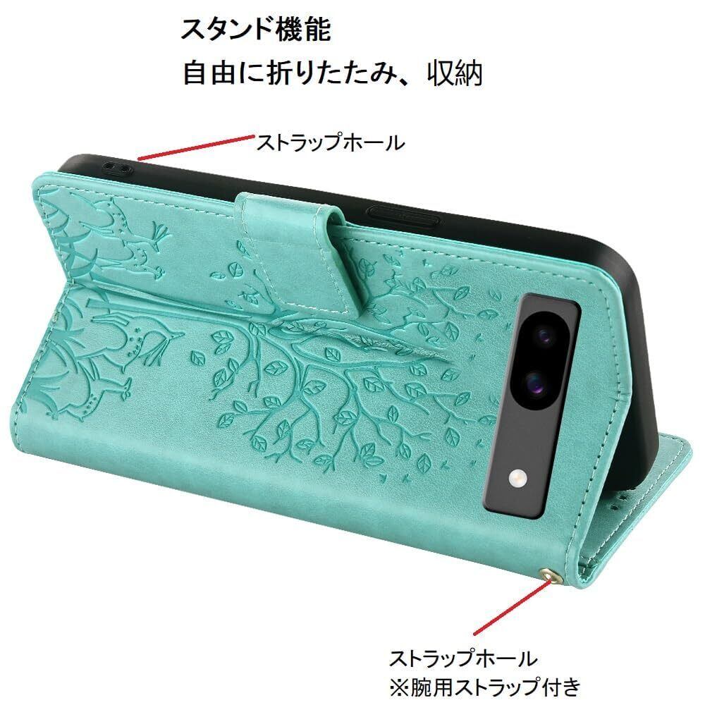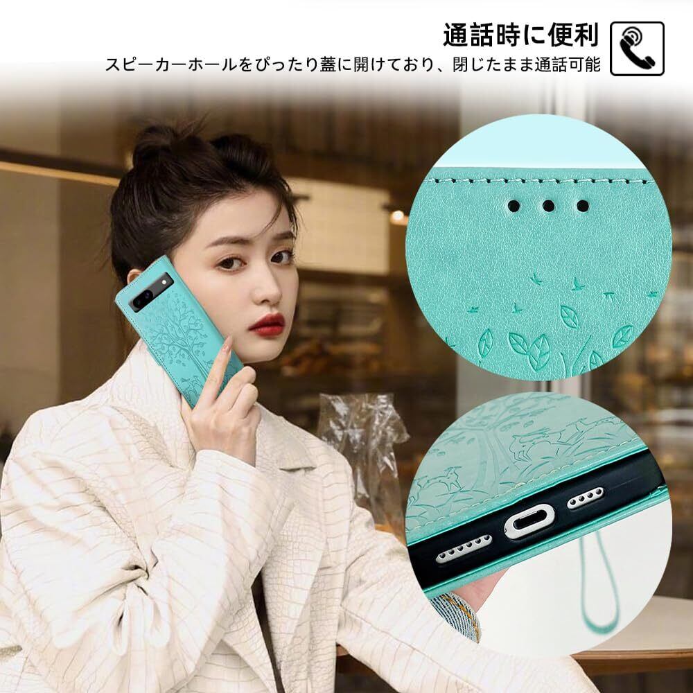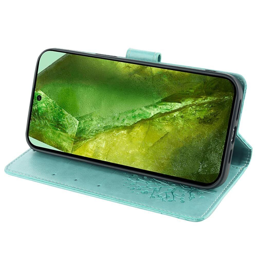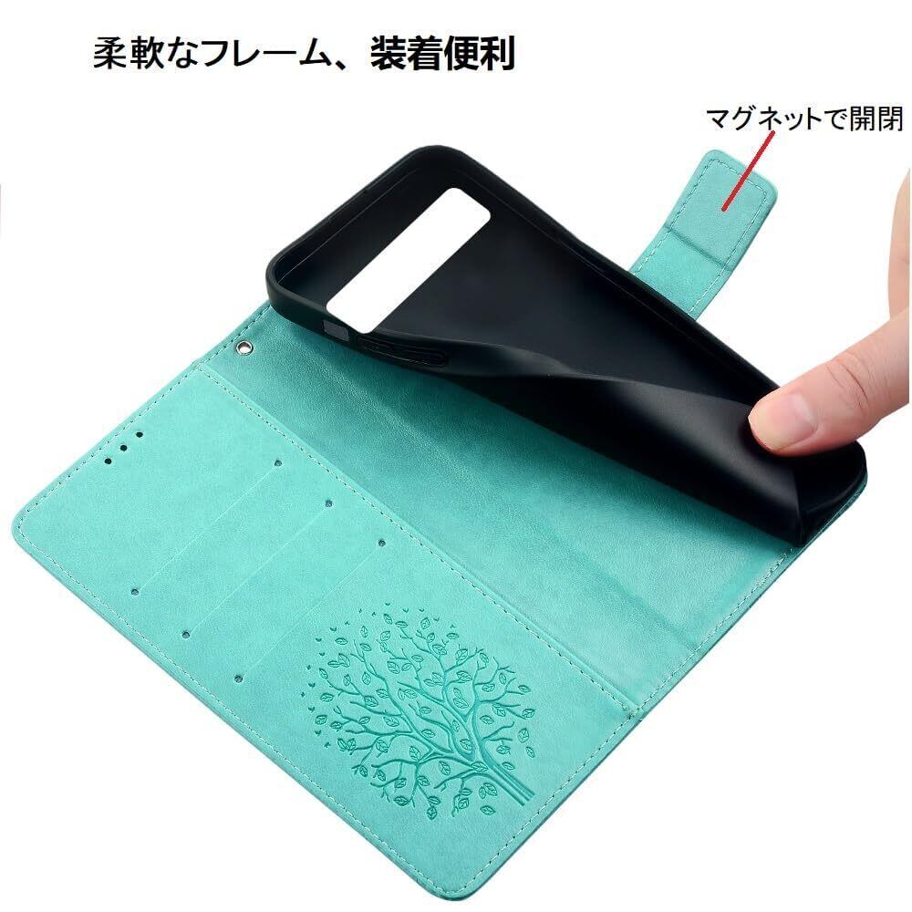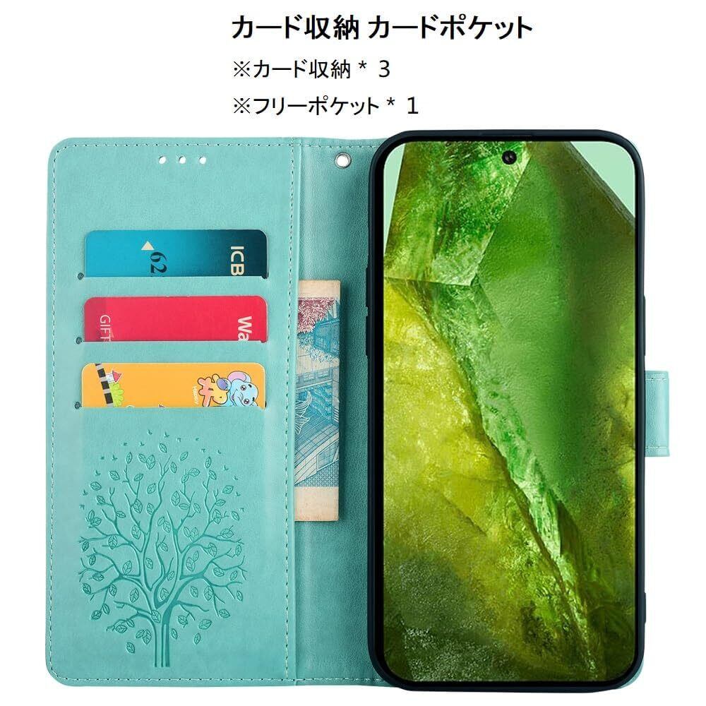 Google Pixel 8a ケース 手帳型 3枚 カード収納 グーグルピクセル8a 財布型 カバー SUGOIDAN 携帯ケース カードポケット付き カード レザー スタンド機能 ストラップ付き マグネット内蔵 耐衝撃 全面保護(グリーン)
