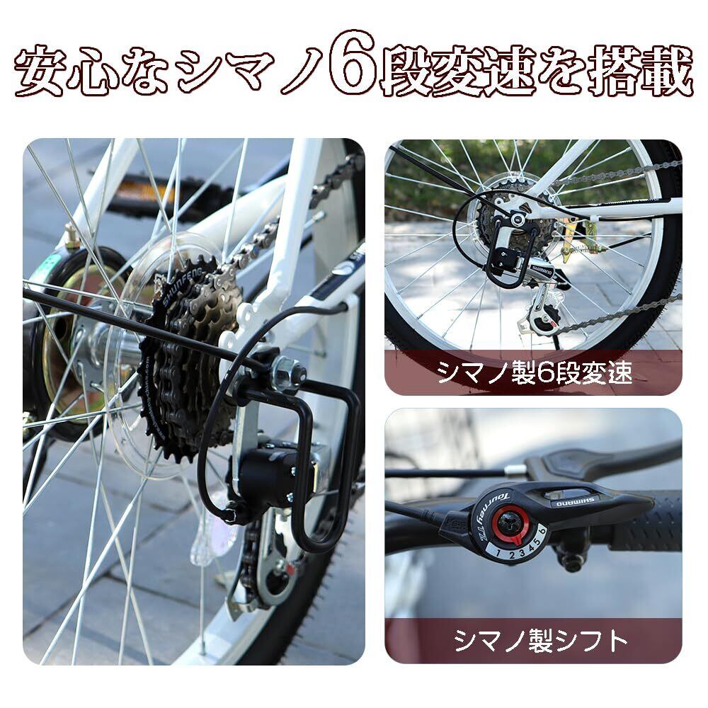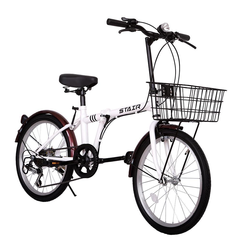 折りたたみ自転車 折り畳み自転車 シマノ6段変速 20インチ カゴ付 自転車 前後泥除け装備 通勤 通学 街乗り 小径車