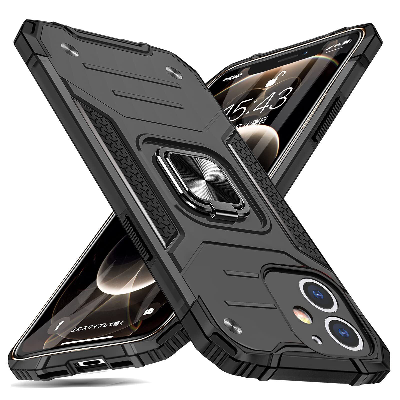 iPhone 11 用 ケース リング付き 衝撃吸収 耐衝撃 落下防止 米国軍事MIL標準取得 スタンド機能 PC+TPU 二重構造 防塵 薄型 軽量 一体型 360度回転 全面保護カバー アイフォン 11 用 ケース 黒 MJJ-1051-17-01